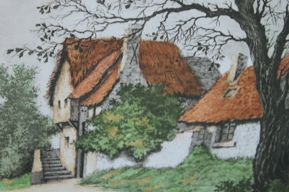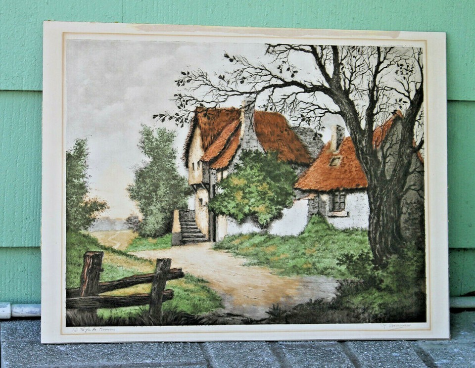 Vintage Original Etching or Aquatint. The artist is Rene Barnaix. The title is "End of Village" or "La Fin Du Hamean"