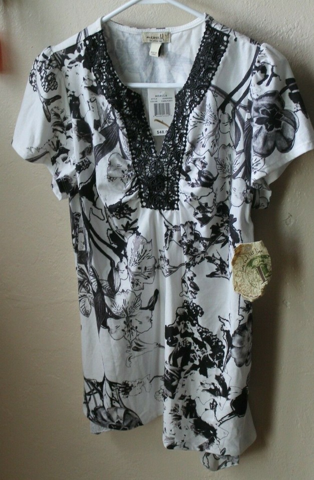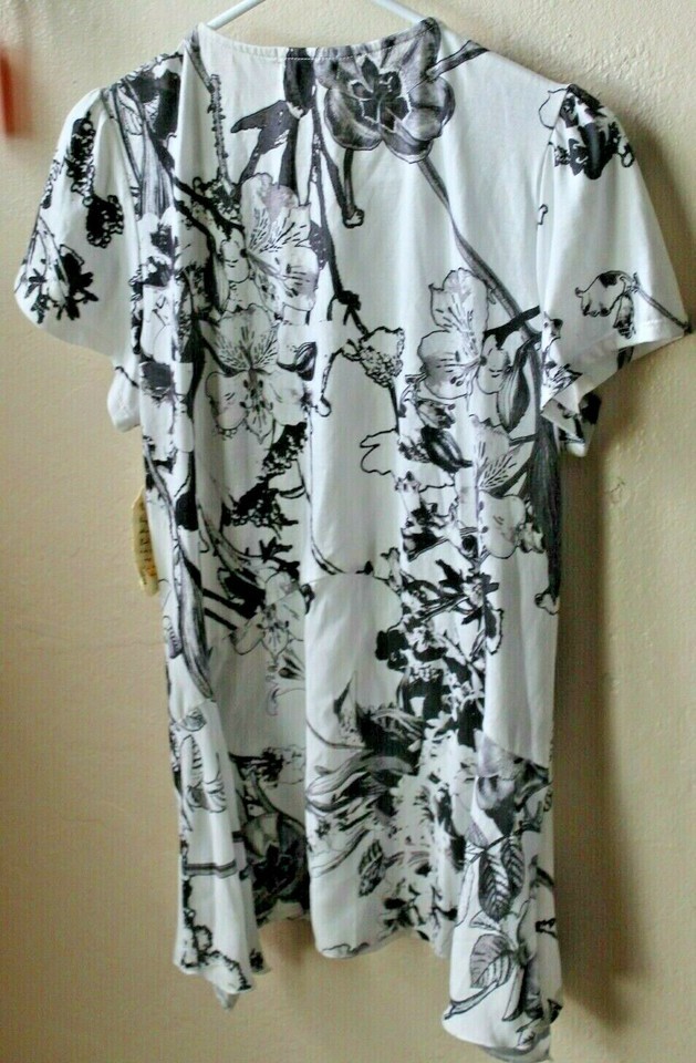 One World Live And Let Live Womens Blouse White Floral Cap Sleeve size Large
