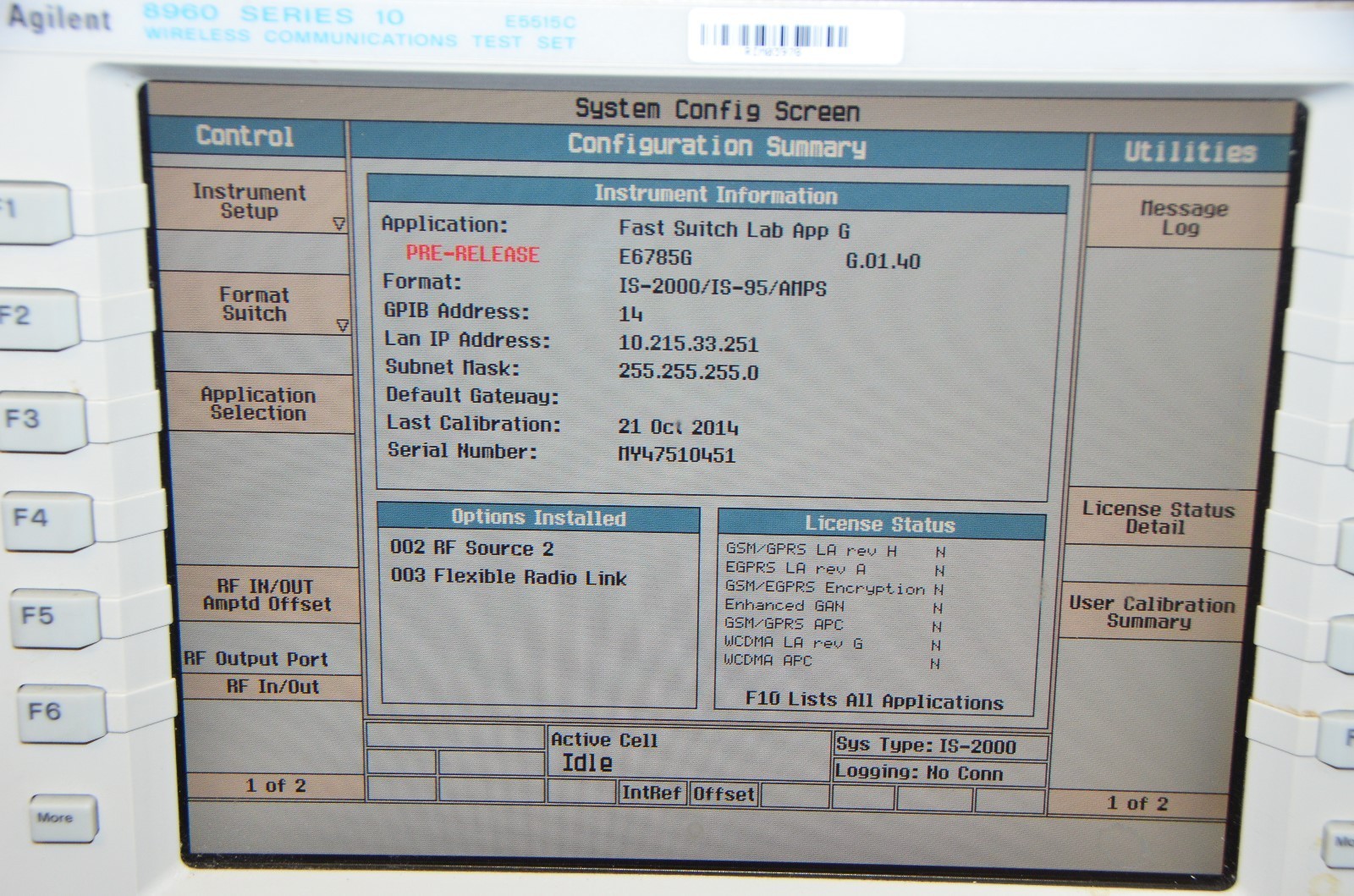 Agilent 8960 Series 10 E5515C ATO-20319 / E6785G / OPT 002 003 / (3) Licenses