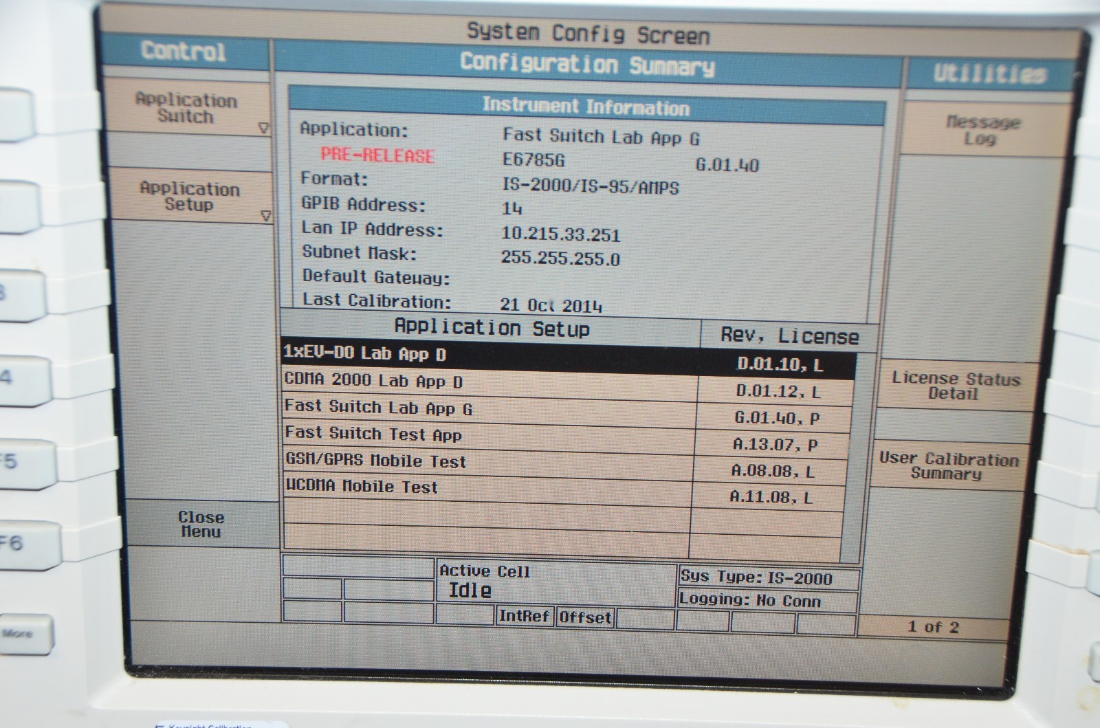 APPLICATION: FAST SWITCH LAB APP G / E6785G G.01.40 PRE-RELEASE