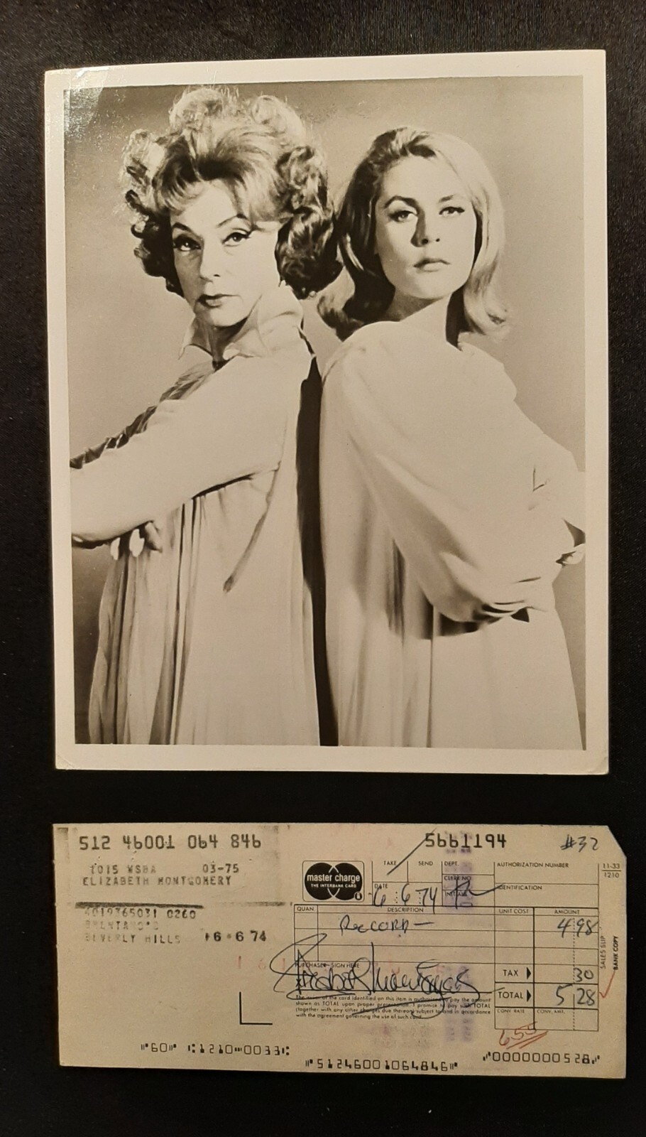Elizabeth Montgomery (HAND sign autograph credit card slip sign by this classic actress match up with this vintage promo still from this classic TV series