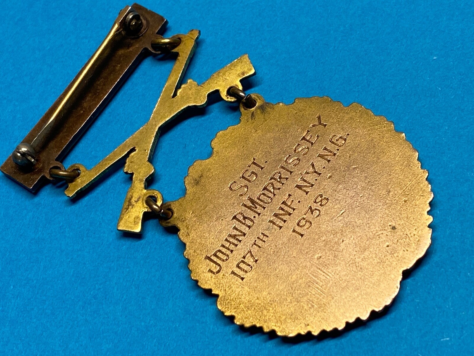 1938, ARMY LEVEL PRIZE, BRONZE, RIFLE COMPETITION, INFANTRY, NAMED, w/RESEARCH