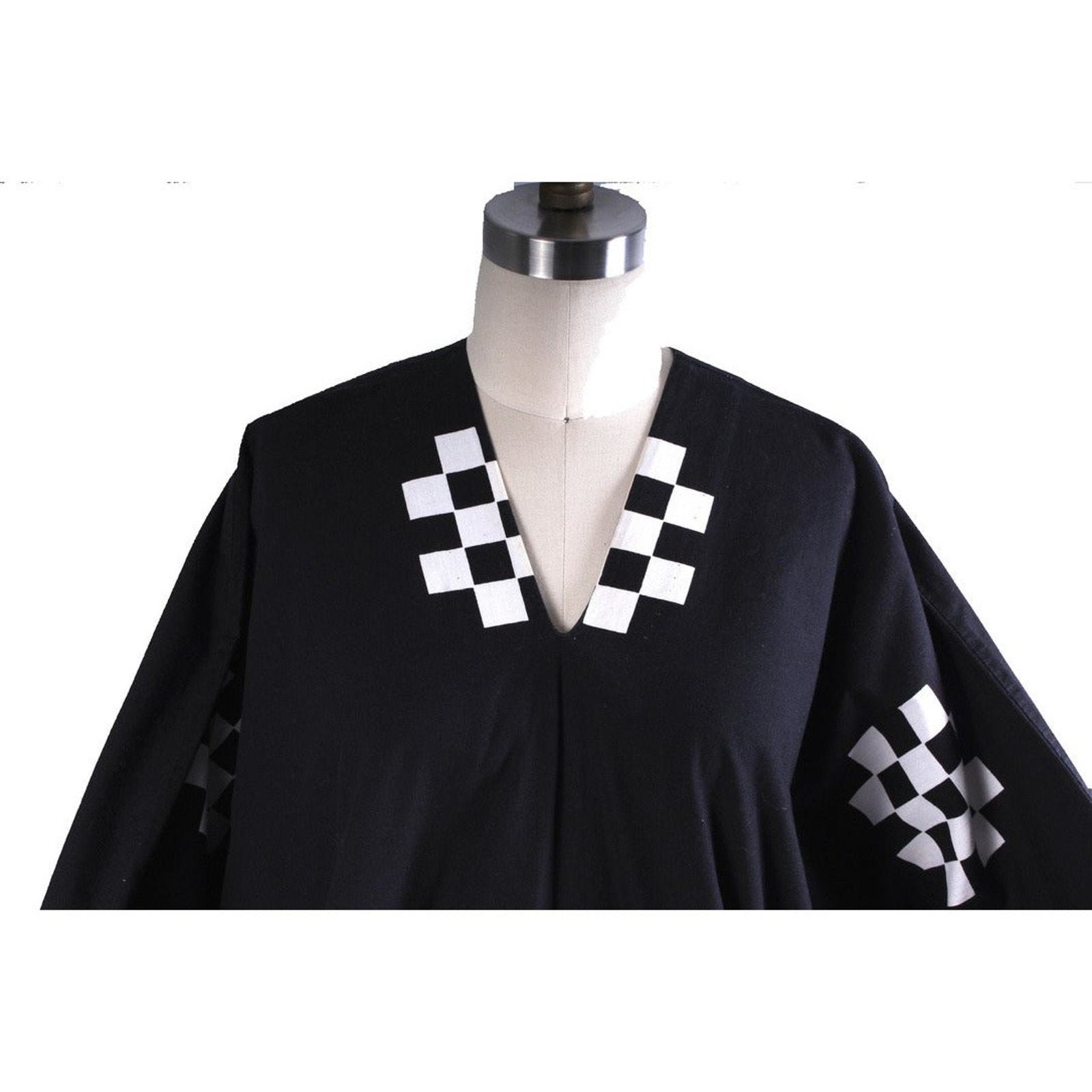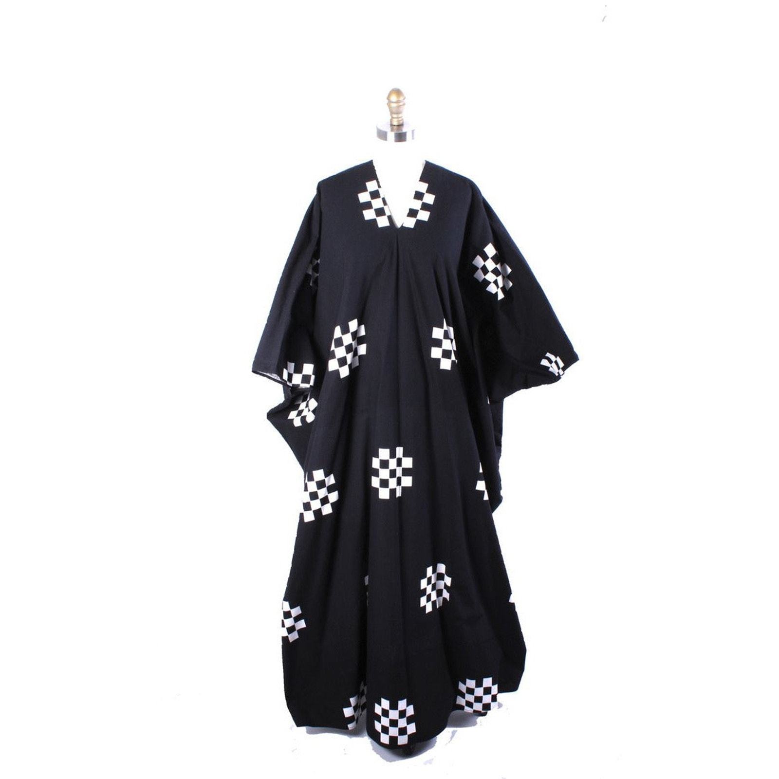 VTG 1975 Marimekko Pivo Kaftan Maxi Dress Katsuji Wakisaka Black White Cotton Fi