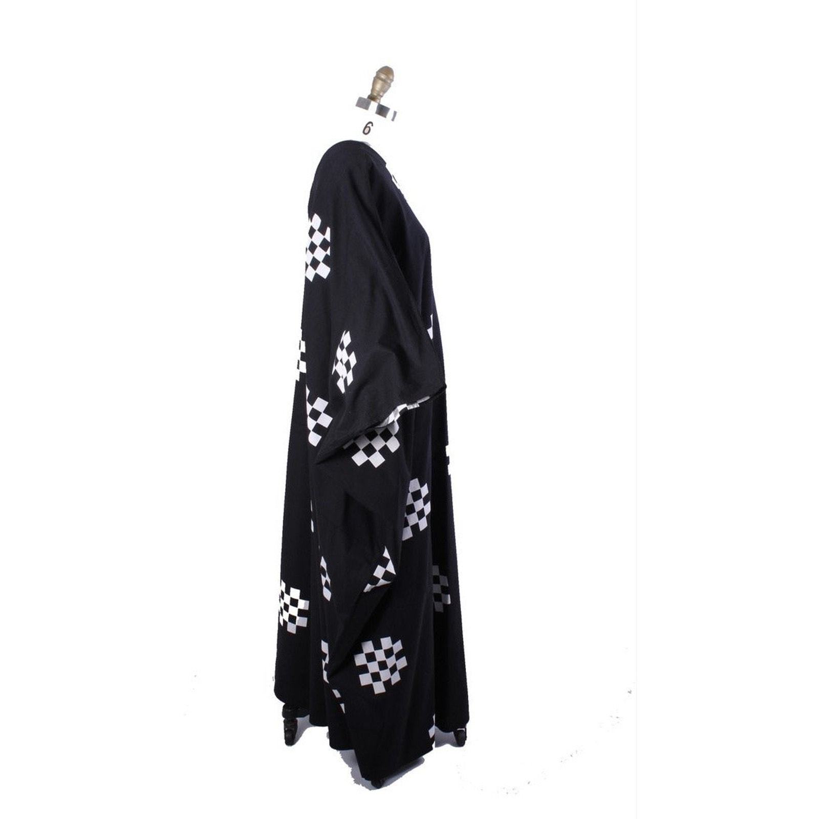 Stunning vintage 1975 Marimekko ?Pivo? kaftan maxi dress designed by Katsuji Wakisaka, one of the label?s most celebrated textile artists. Features a checkerboard-style black and white print in medium-weight 100% cotton with elbow-length sleeves and a fluid, draped silhouette. A rare archival piece ? dramatic yet effortless.