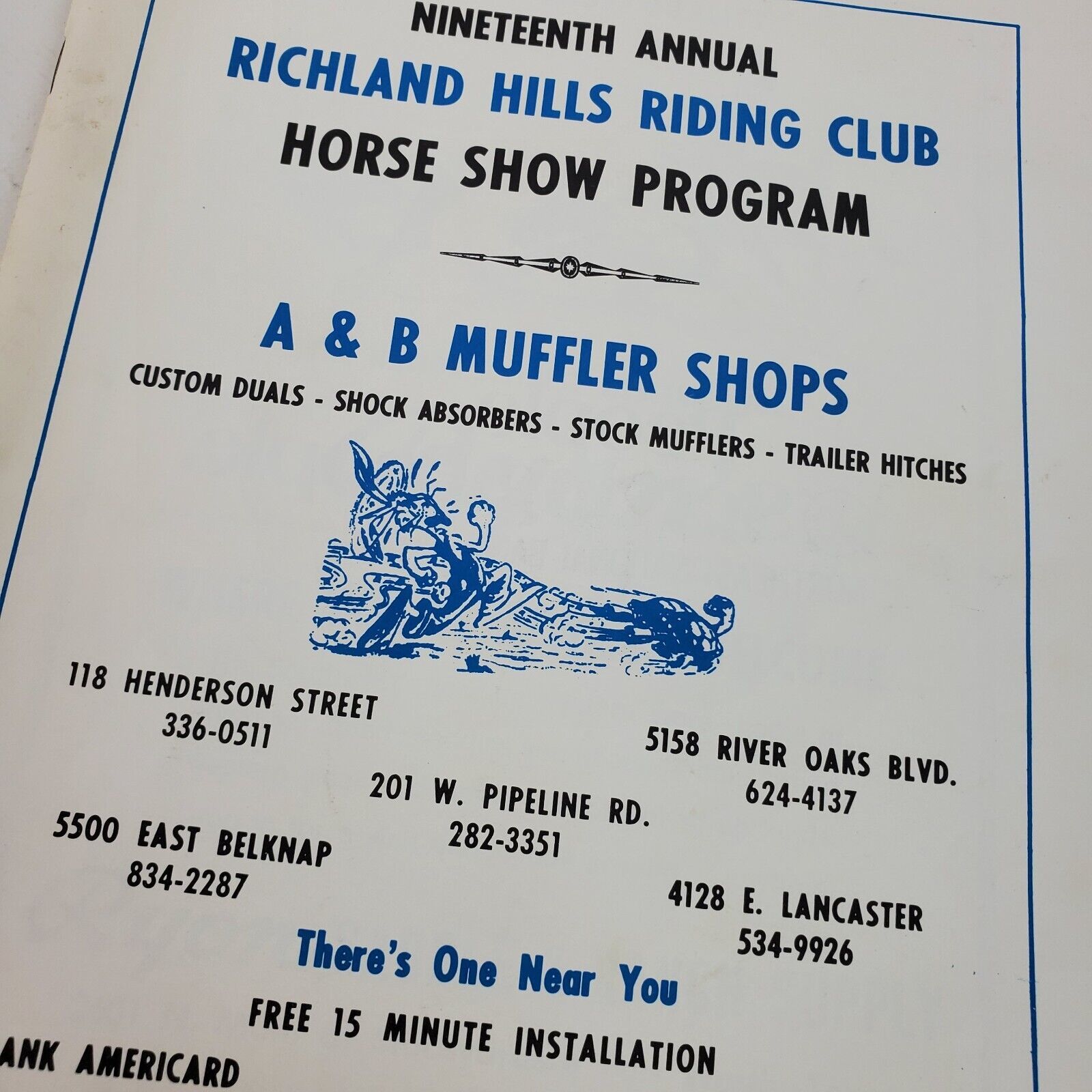Vintage Nineteenth Annual Richland Hills Riding Club Program ~ Texas