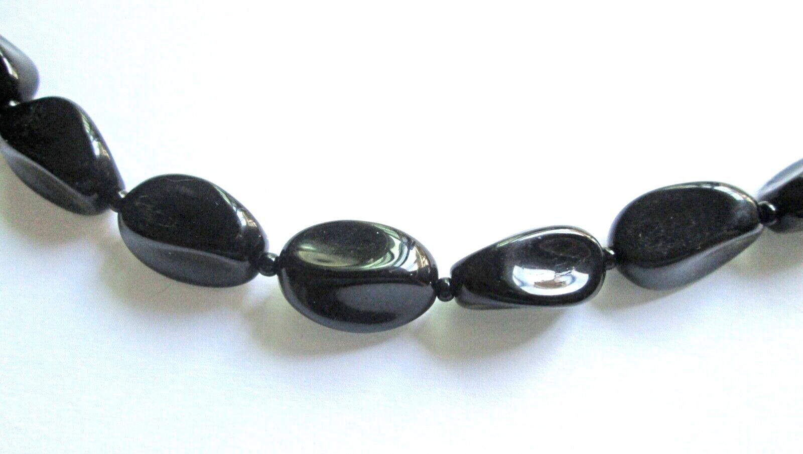ยท This necklace is made of 26 highly polished large black onyx stones, each measuring about ? long by oe? wide. Interspersed between the large stones are tiny round black onyx stones, each about 3/32? in diameter.