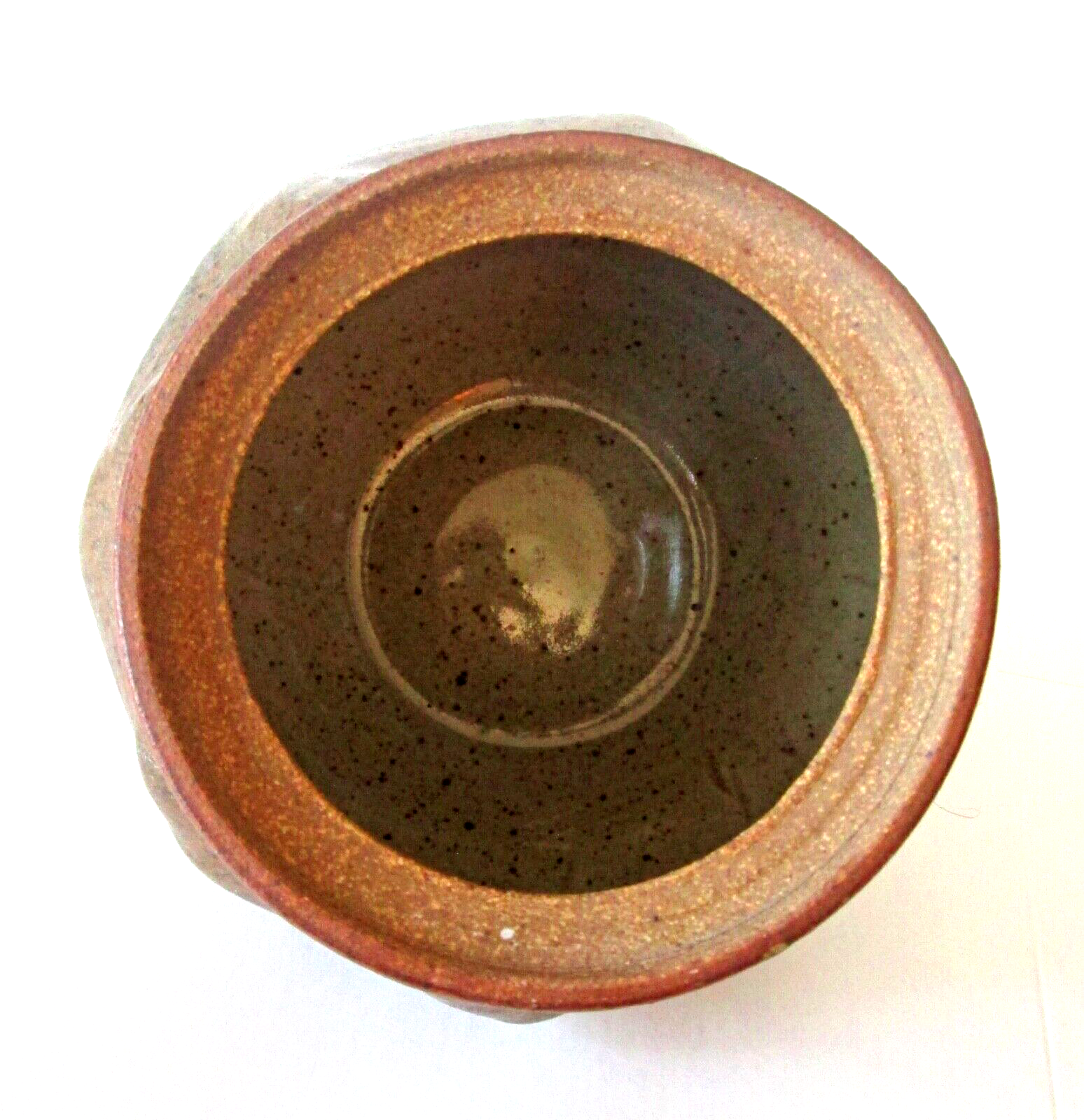 · It was made on a pottery wheel with handmade adaptations to create the ridges on the side.