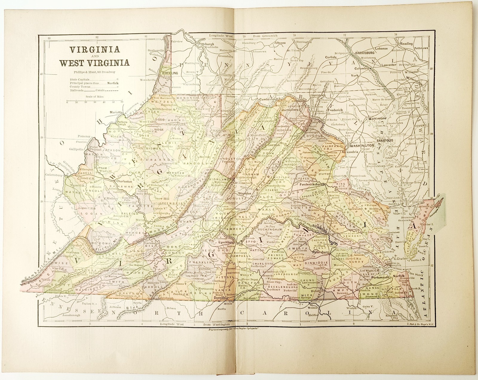 1883 Antique Map Virginia West Virginia and 39 similar items