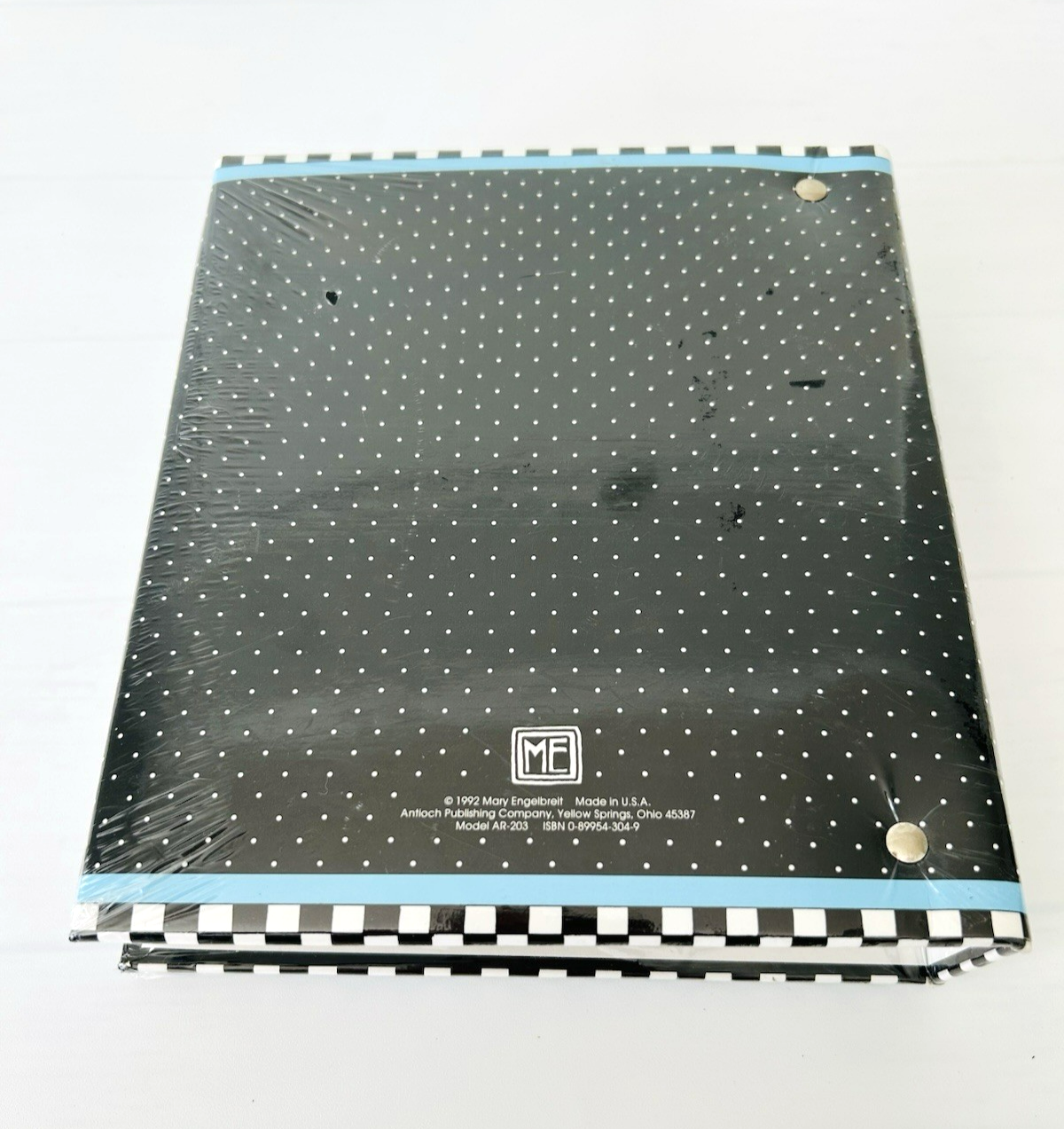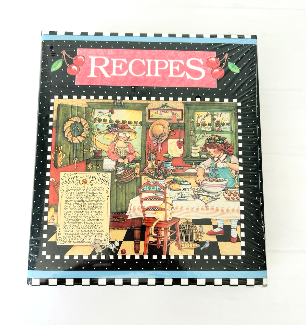 Vintage Mary Engelbreit Cherries Black White Checkered 3 Ring Recipe Binder Cookbook 48 Cards NEW Sealed Old Stock