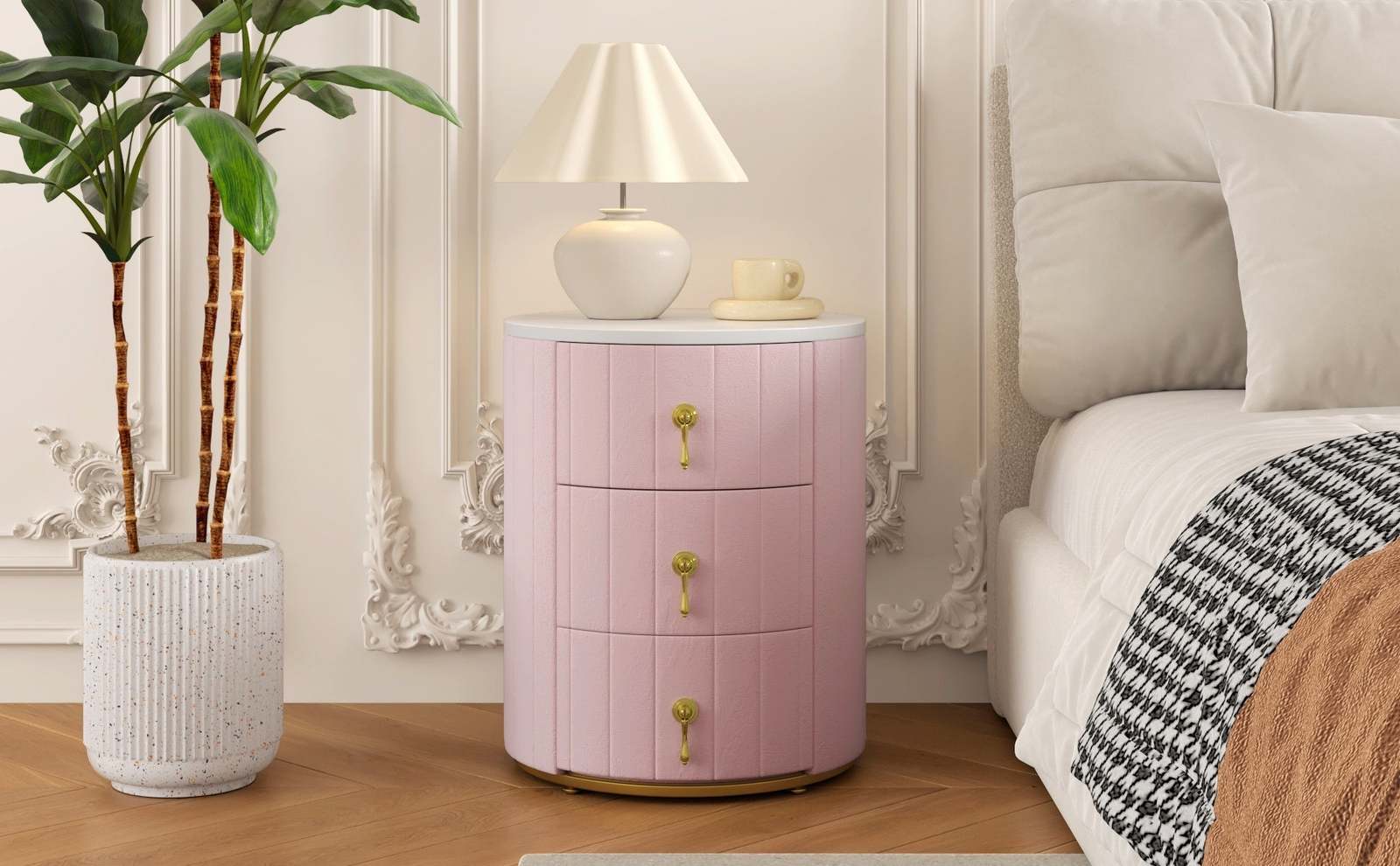 Pink Upholstered Round 3-Drawer Nightstand, and 50 similar items