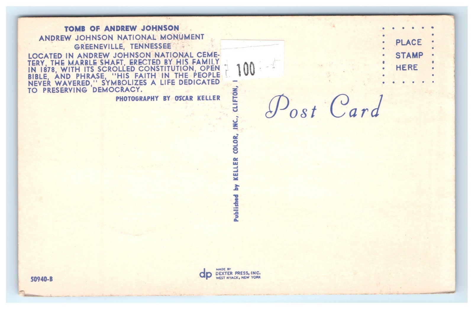 Tomb of Andrew Johnson Marble Monument Cemetery Greeneville TN Postcard