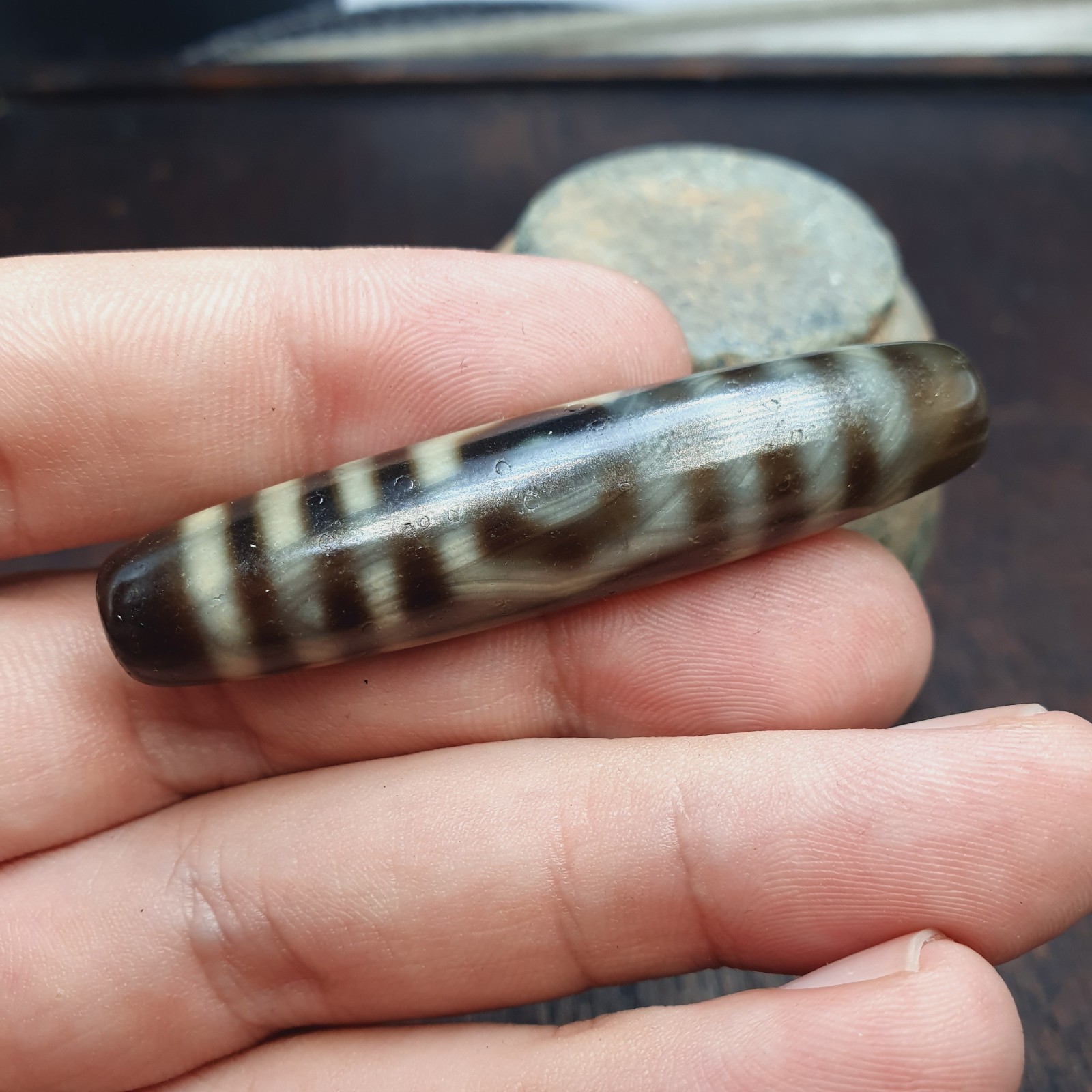 Old Indo Tibetan Agate Eye lines Agate stone Dzi Bead Amulet