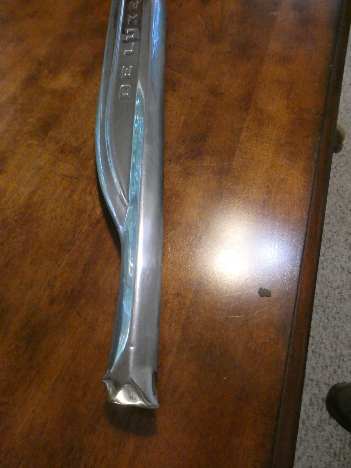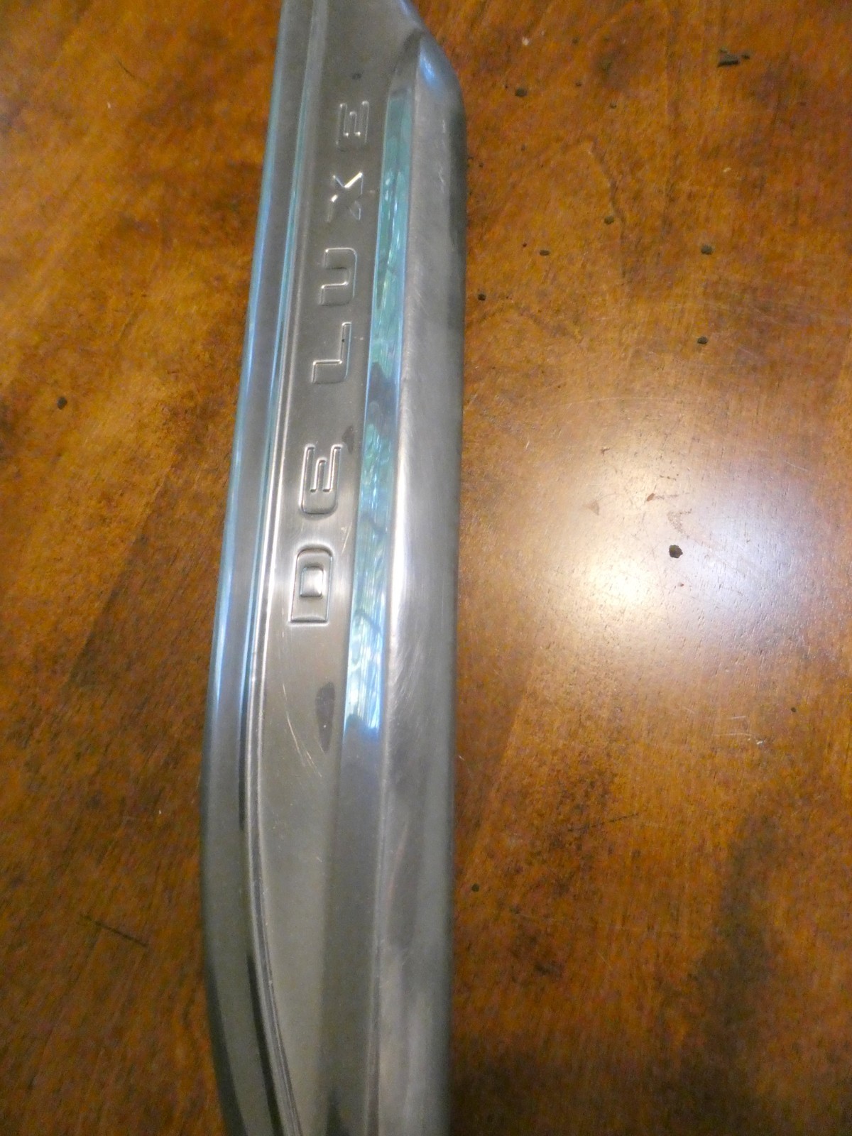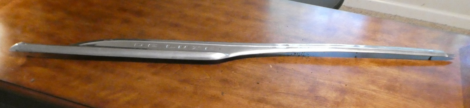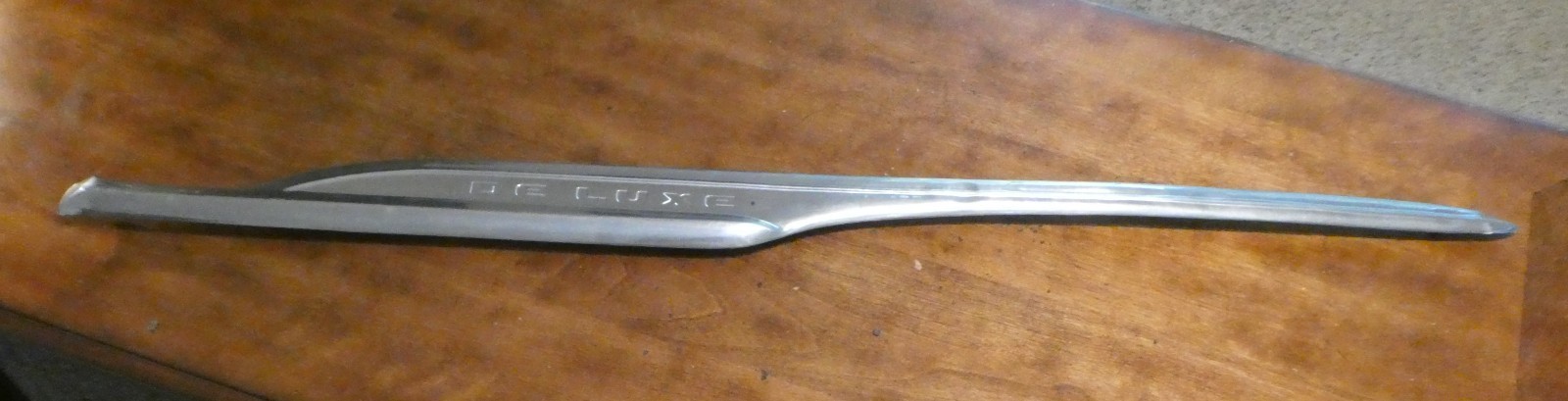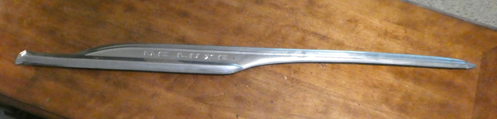 1951 Chevrolet Styleline Fleetline Deluxe Right hand passenger side Fender Trim Molding. There are some dings, dents, scratches, rust damage on the back side of molding, damage to one end of the molding as shown in pictures.