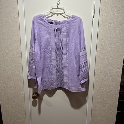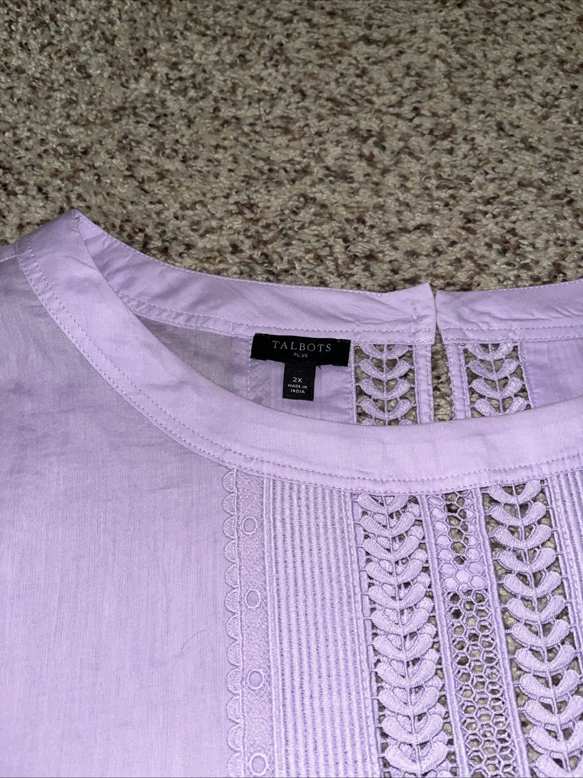 Talbots Plus Lavender Lace Striped Cotton Blouse Size 2X With Camisole Cotton