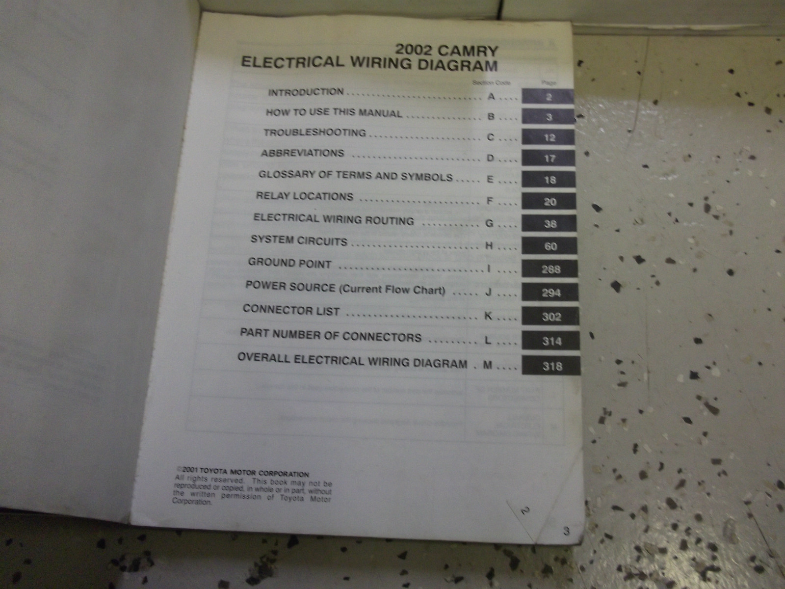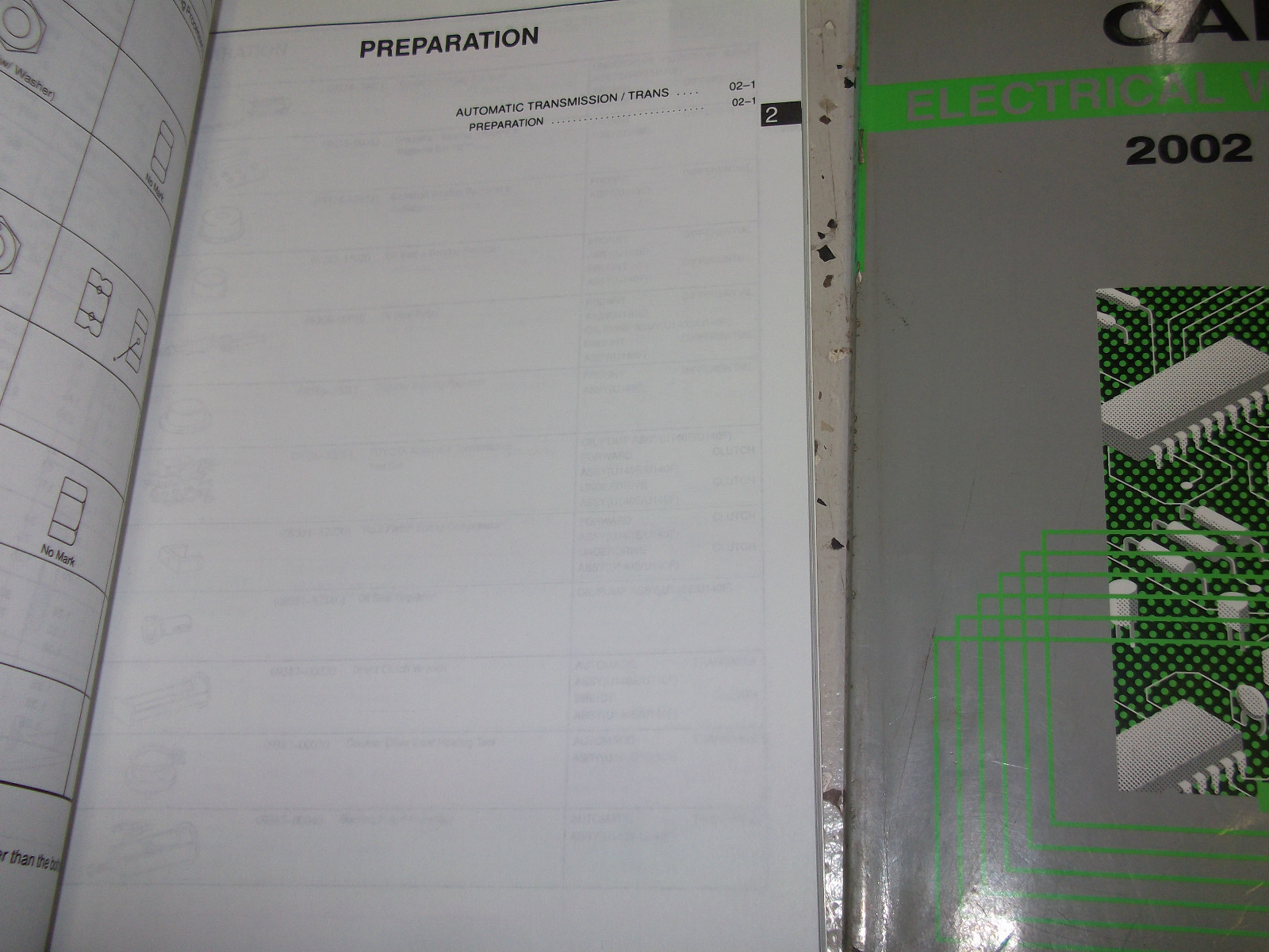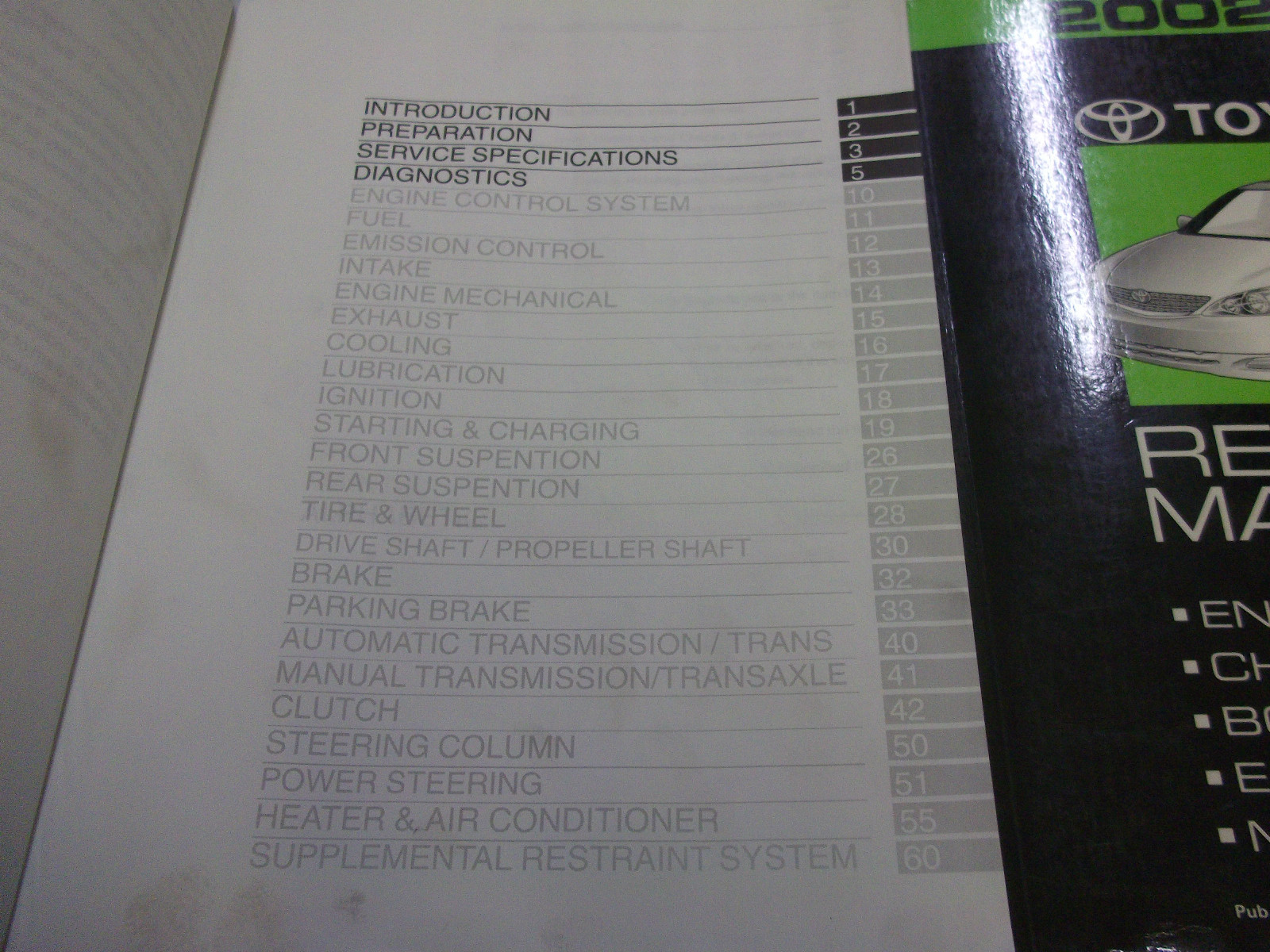 2002 Toyota CAMRY Factory Service Manual 2 Volume Set,New Car Features Manual, Wiring Diagrams Manual, and the Automatic Transmission Manual.