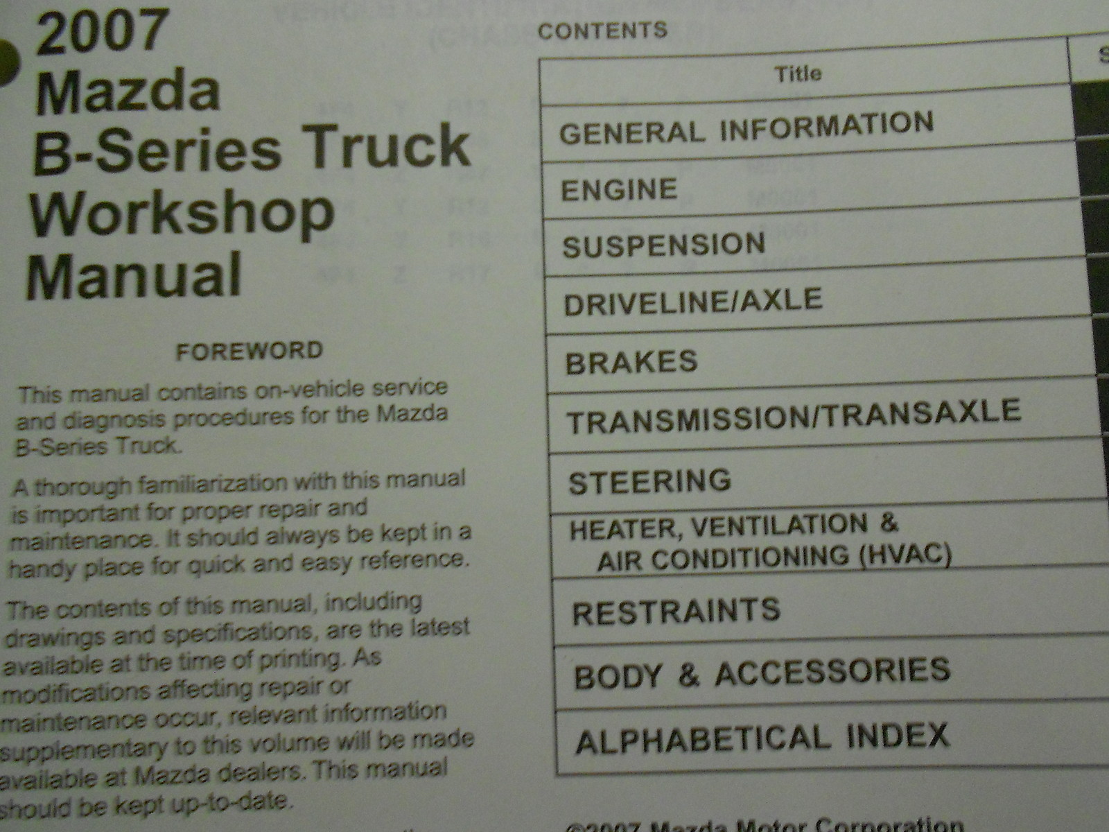 2007 MAZDA B-Series Truck Service Manual, and the Electrical Wiring Diagram Manual