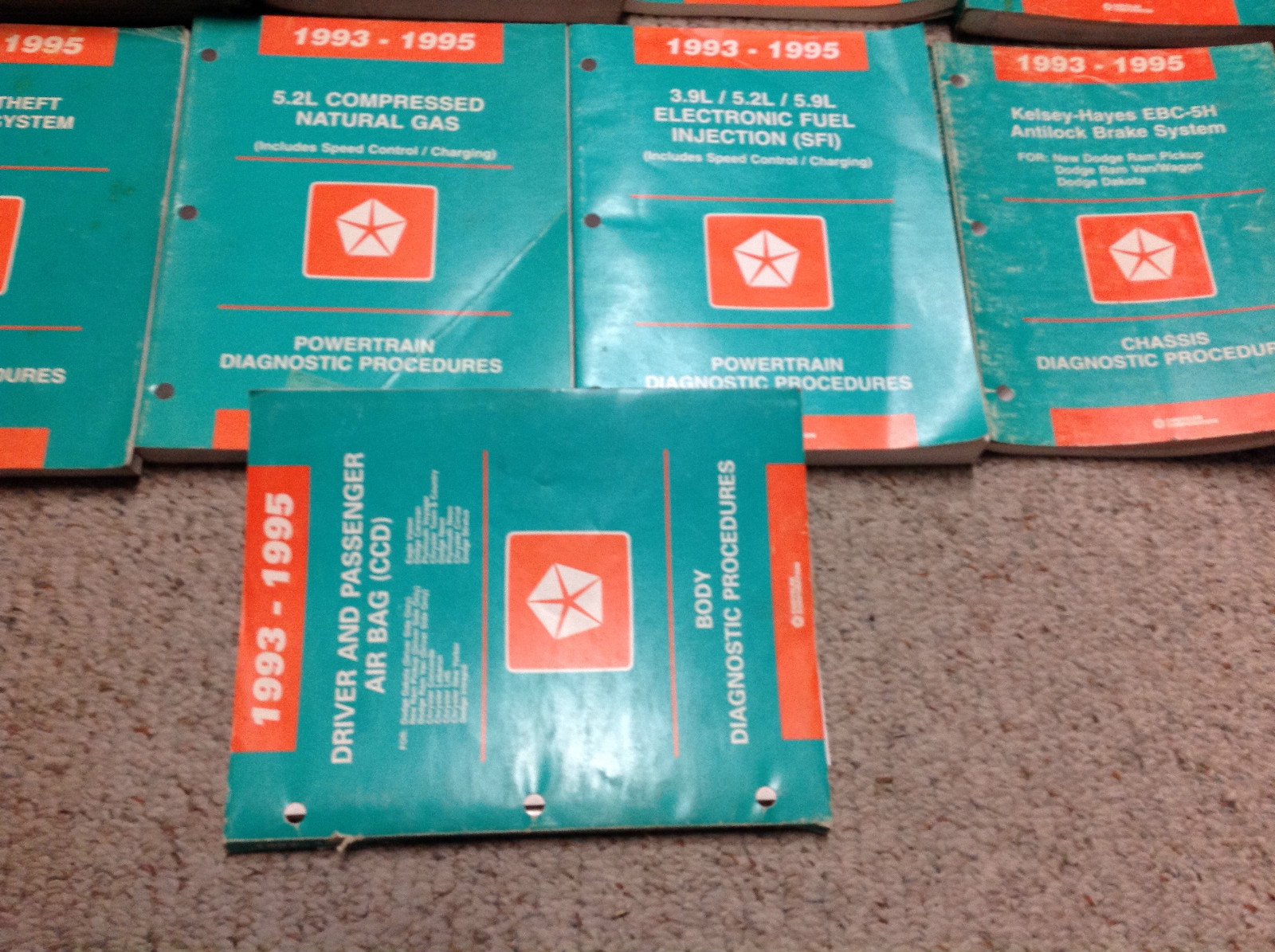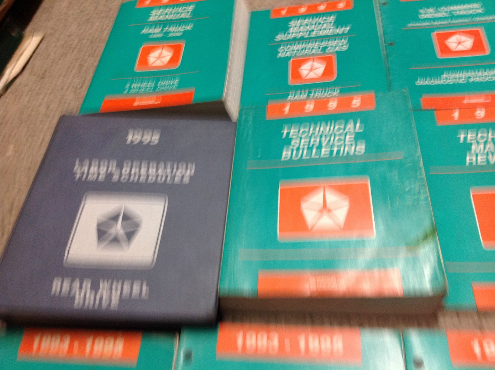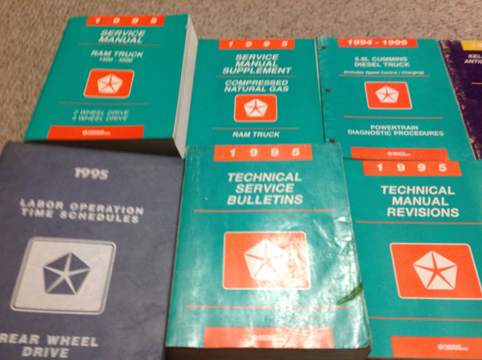 FACTORY 1995 Dodge Ram Truck 1500-2500-3500 Factory Service Manual, Cummins 5.9 Powertrain Manual,Service Manual Supplement, Chassis/Powertrain/Body Diagnostic Procedures Manuals, Technical Service Bulletin Manual, Technical Manual Revisions, Labor Time Guide Manual