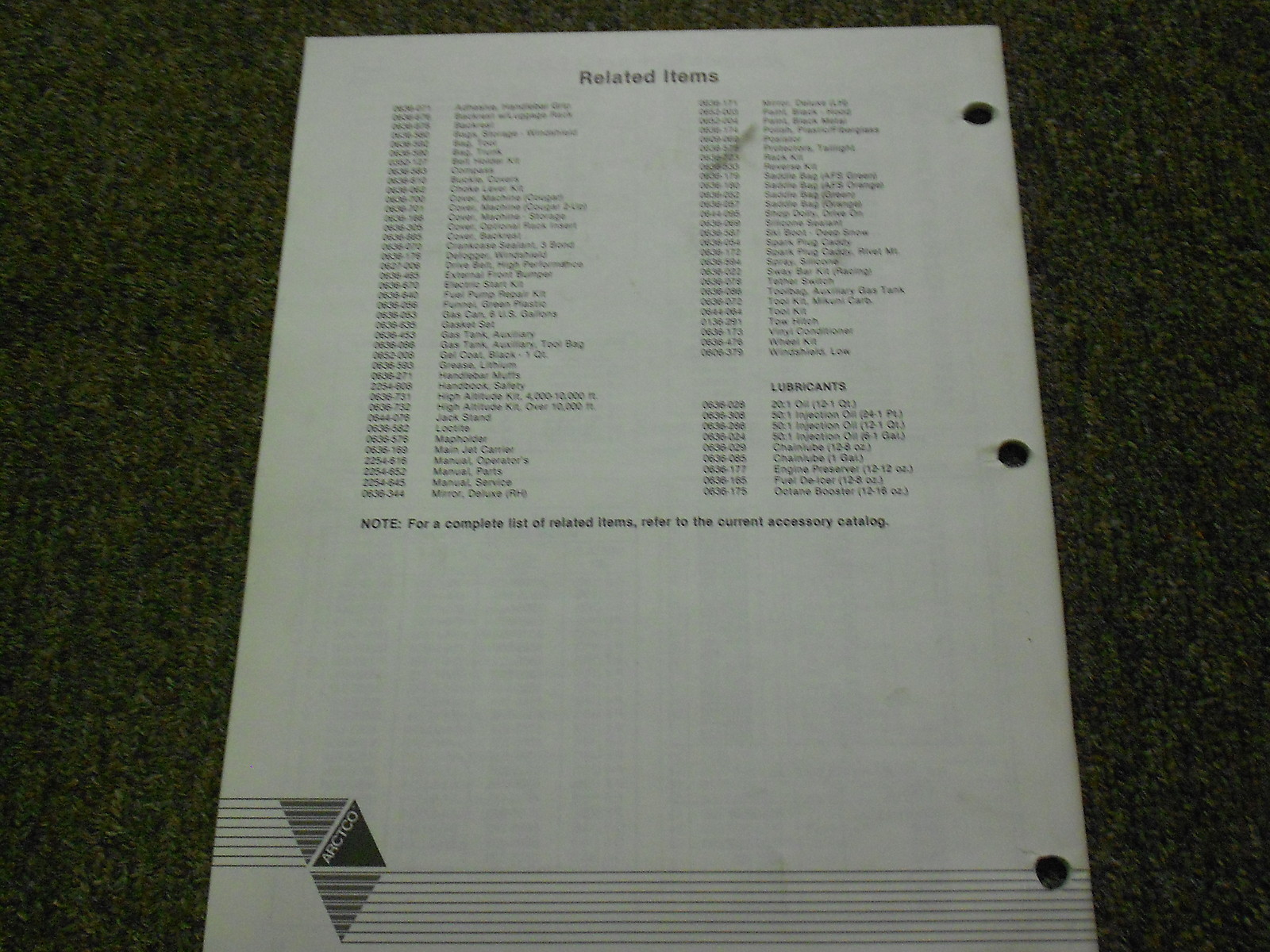 1991 ARCTIC CAT COUGAR ILLUSTRATED PARTS MANUAL If you have further questions feel free to message us or call us at We will leave POSITIVE Feedback after we receive your payment. Please do not forget to give us POSITIVE Feedback and FIVE Stars on all of the Detailed Seller Ratings! If you are not satisfied with your shopping Experience, please contact us to get a solution before you decide to leave a NEUTRAL or a NEGATIVE Feedback, We will do our best to solve any problems for you as soon as possible. We will provide you with the BEST POSSIBLE service because the POSITIVE Feedback and FIVE Stars are what we are striving for. Please email me through "My Messages" or "Ask Seller Questions" if you have any question about our listings or your purchase. Please give us a Five Star Rating! Tha