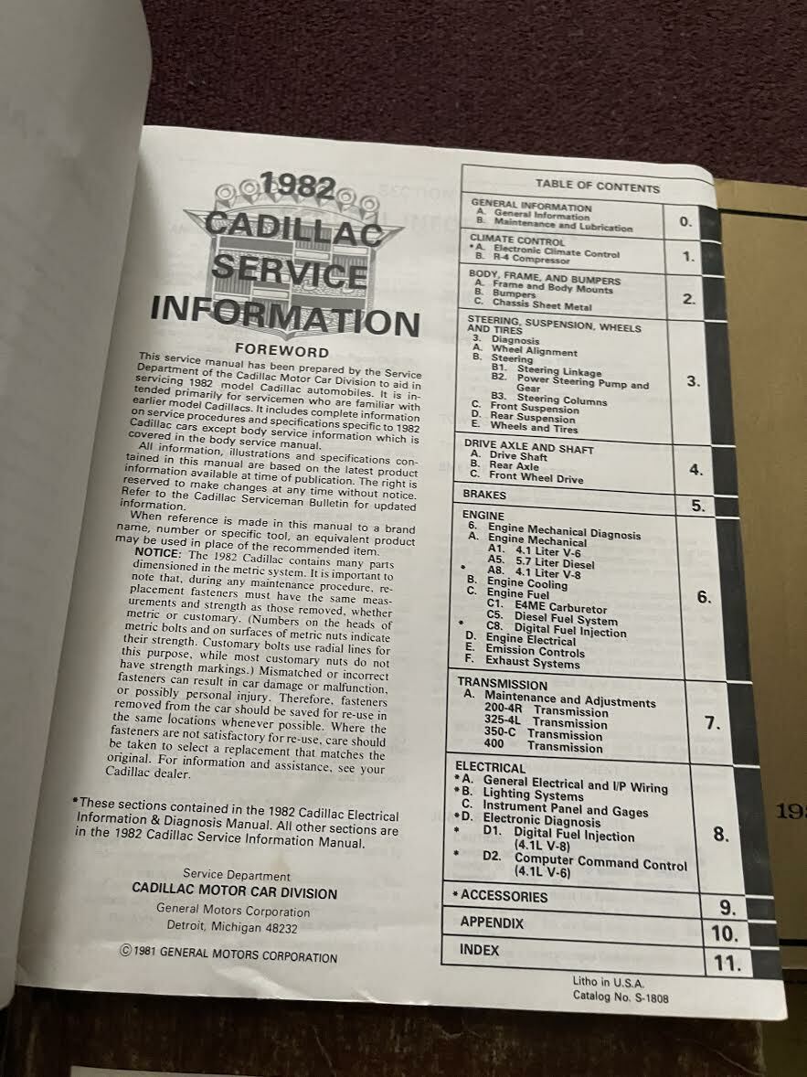1982 Cadillac Eldorado Siviglia Fleetwood Brougham Repair Servizio Manuale Set 3