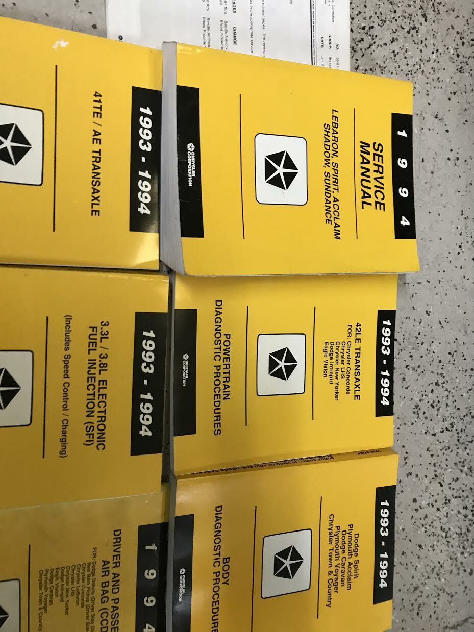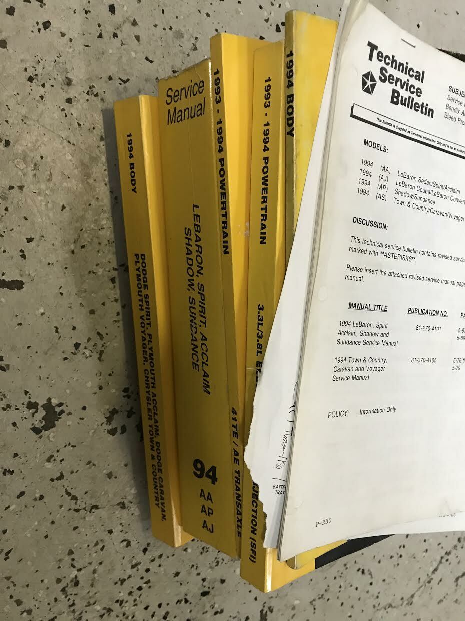 Set Di Manuali Di Servizio Chrysler Lebaron Spirit Shadow Sundance Acclaim 1994