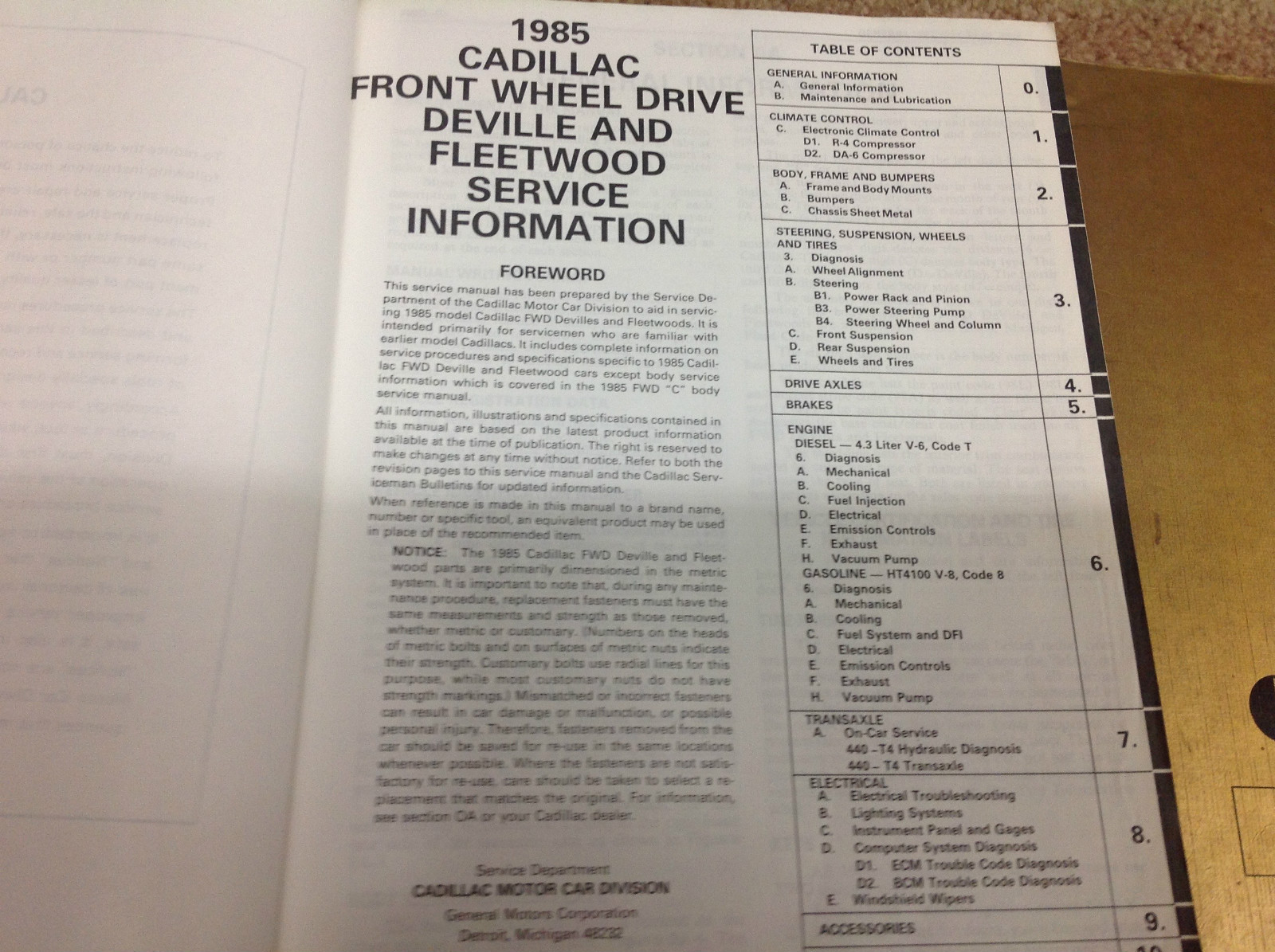 Manuale Di Servizio OEM 1985 CADILLAC FLEETWOOD E DEVILLE FWD