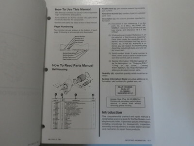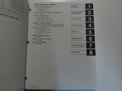 Un sacco di informazioni e illustrazioni, copre molto, senza pagine mancanti, passo per passo Istruzioni, esploso Illustrazioni e/o diagrammi, ottimo manuale da avere quando possiedi un Mercruiser Bravo Stern Drive. Questo manuale ti fara risparmiare denaro Riparazioni/Servizio.