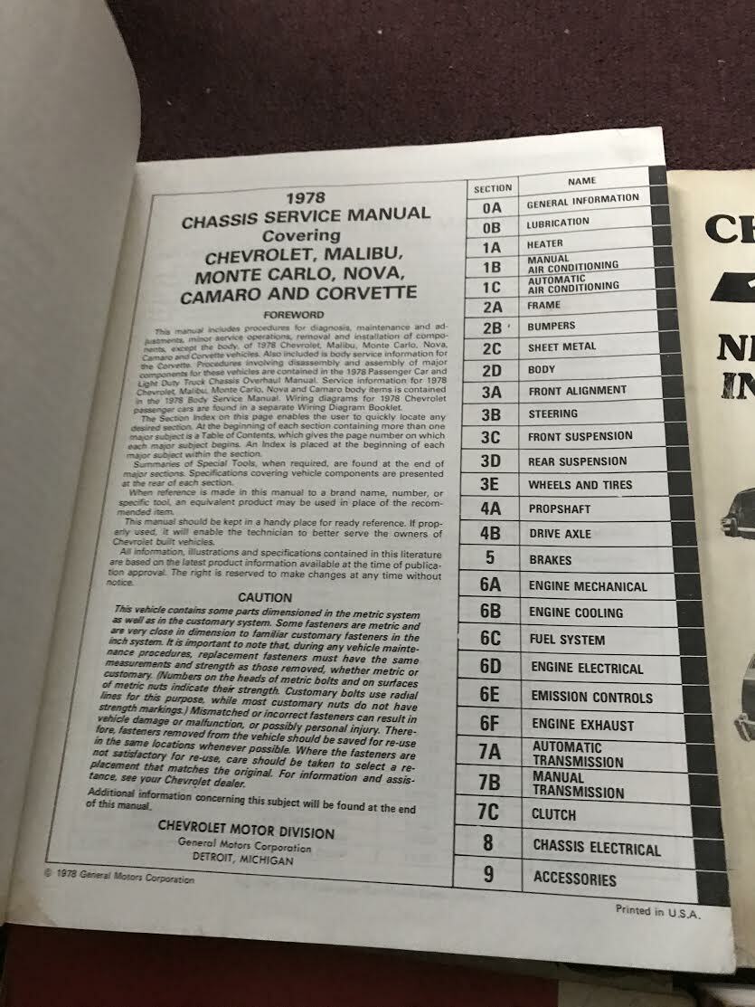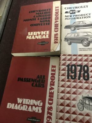 1978 Factory Chevrolet Camaro/Malibu/Nova/Monte Carlo/Corvette Manuale di servizio, Manuale dei diagrammi di cablaggio, Manuale di nuovi prodotti, Manuale di riparazione di unita, Manuale del corpo Fisher e Cataloga delle parti Schermate nella borsa di fabbrica