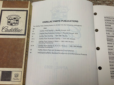 Factory 1968 through Model Years 1975 Cadillac CHASSIS BODY PARTS CATALOG MANUAL, the ILLUSTRATION CATALOG MANUAL, EFFECTIVE APRIL 1983 These manuals are published by GM, same books the GM PARTS DEPARTMENT USED. We will leave POSITIVE Feedback after we receive your payment. Please do not forget to give us POSITIVE Feedback and FIVE Stars on all of the Detailed Seller Ratings! If you are not satisfied with your shopping Experience, please contact us to get a solution before you decide to leave a NEUTRAL or a NEGATIVE Feedback, We will do our best to solve any problems for you as soon as possible. We will provide you with the BEST POSSIBLE service because the POSITIVE Feedback and FIVE Stars are what we are striving for. Please email me through "My Messages" or "Ask Seller Questions"