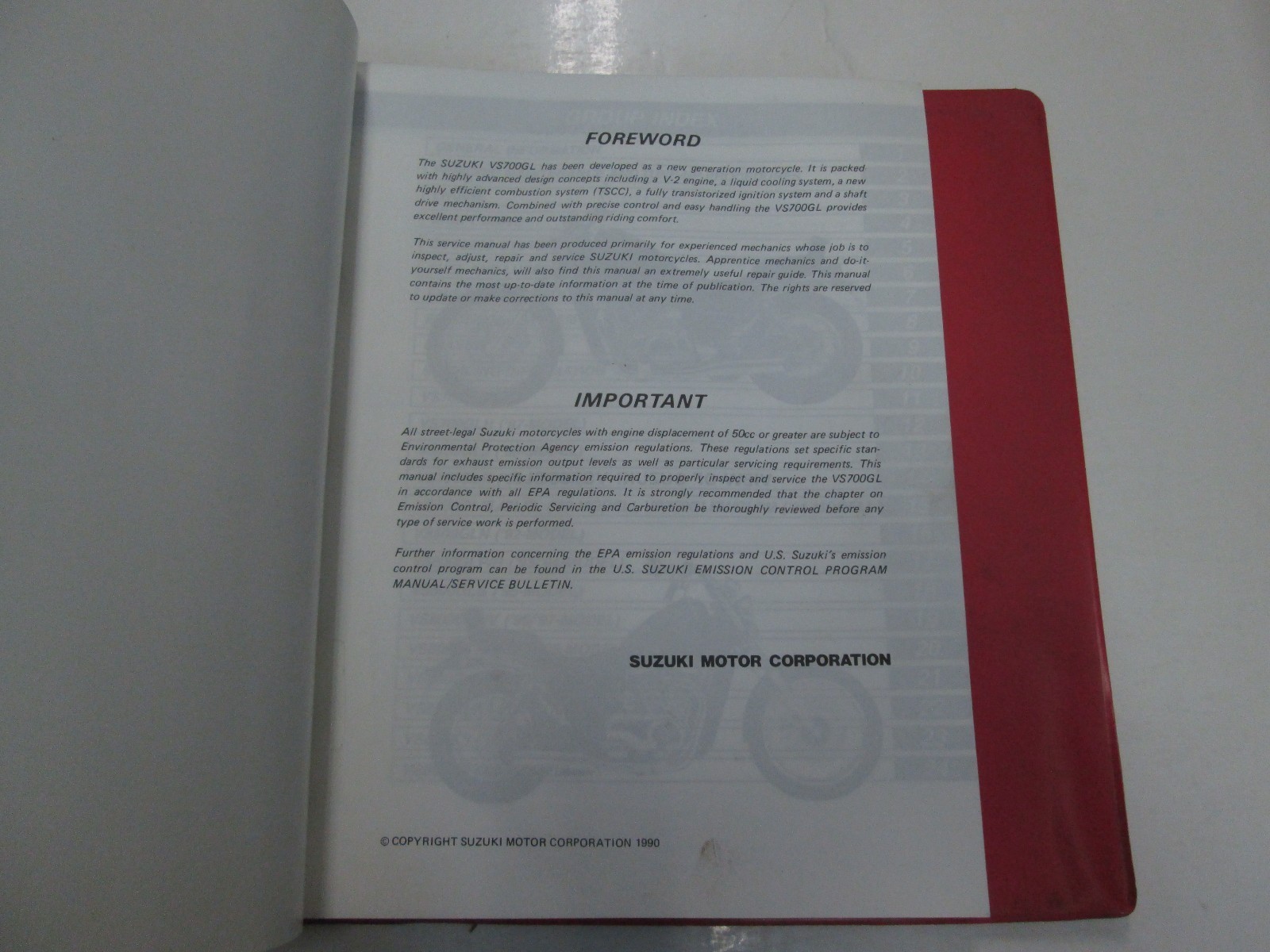 1990 Suzuki GV700GL Servizio Riparazione Negozio Manuale Binder Minor Macchie