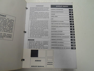 SUZUKI AN650 Manuale di riparazione di servizi 99500-36113-03E OEM