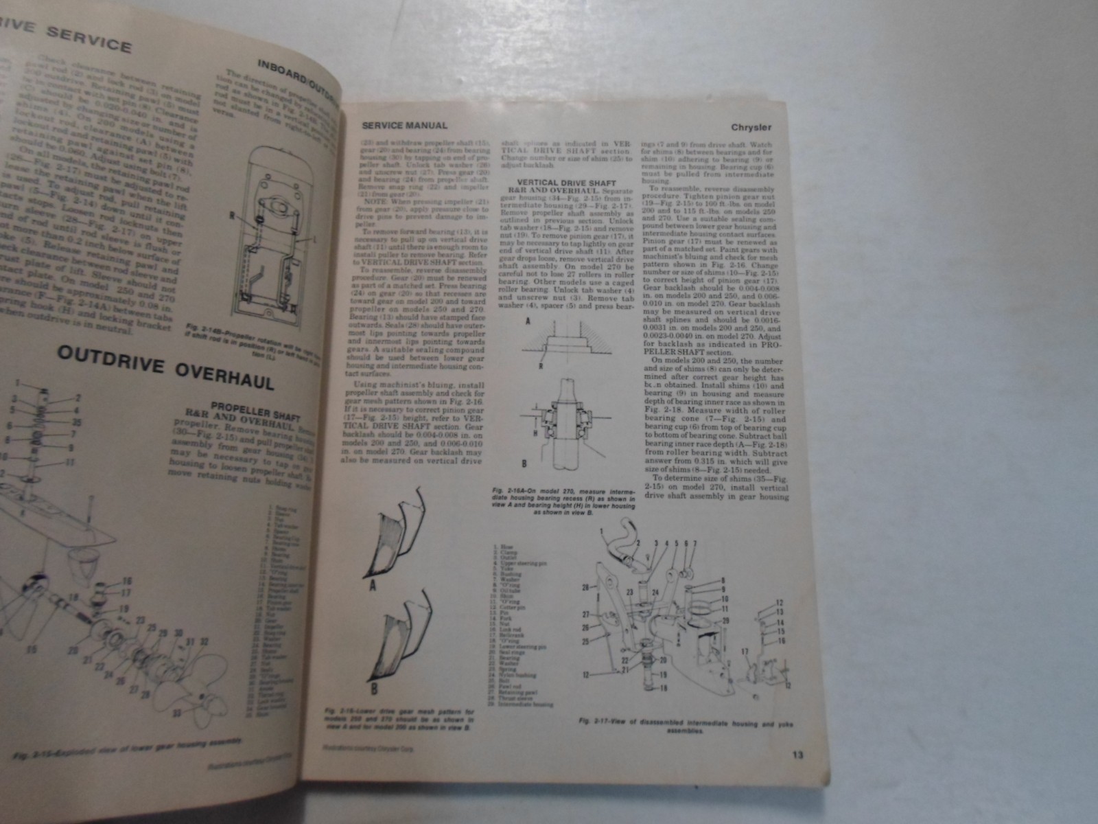 1974 Manuale di riparazioni di servizi di assistenza per outdrive in bordo indossato