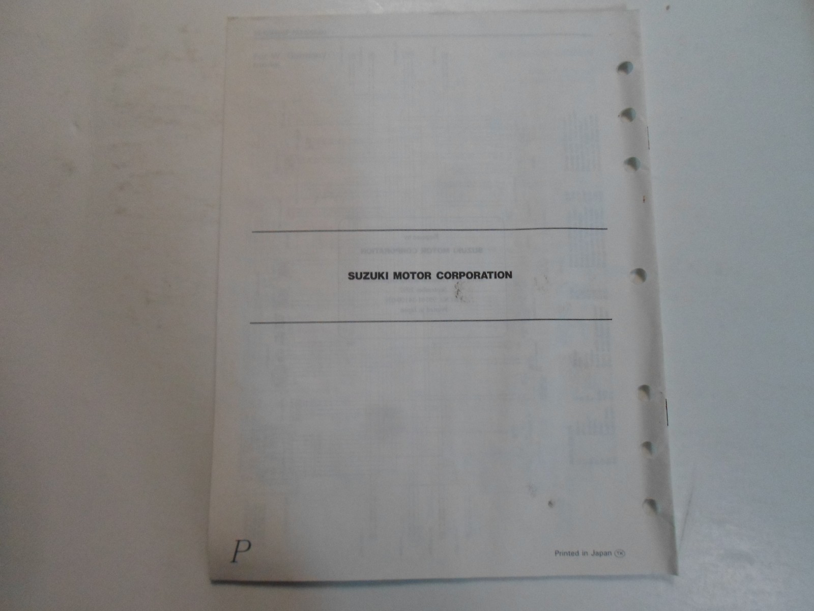 Informativo con illustrazioni, copre informazioni limitate, esploso Illustrazioni e/o diagrammi, ottimo manuale da avere quando possiedi un Suzuki e manterra la tua bici sulla strada. Questo manuale ti fara risparmiare denaro Riparazioni/Servizio.