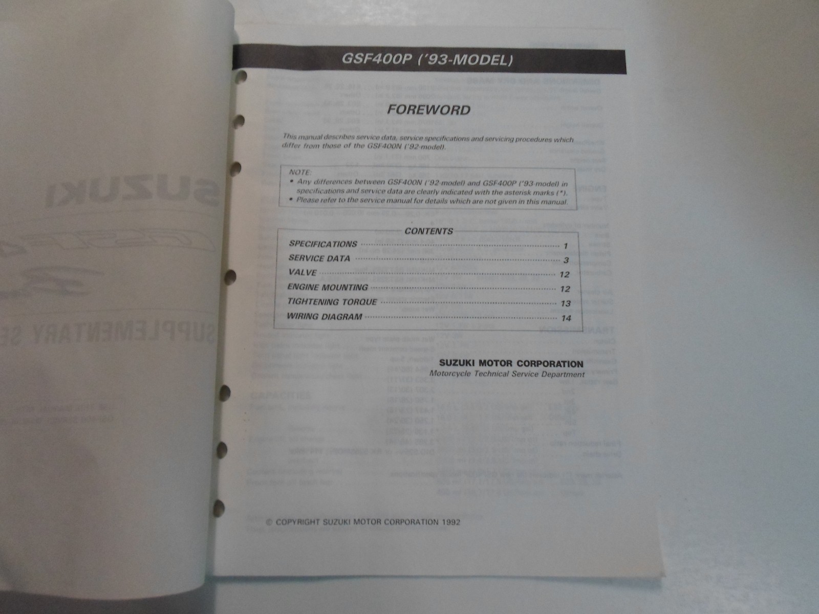 1993 Manuale di servizio supplementare Suzuki GSF400 Bandit Acqua danneggiata