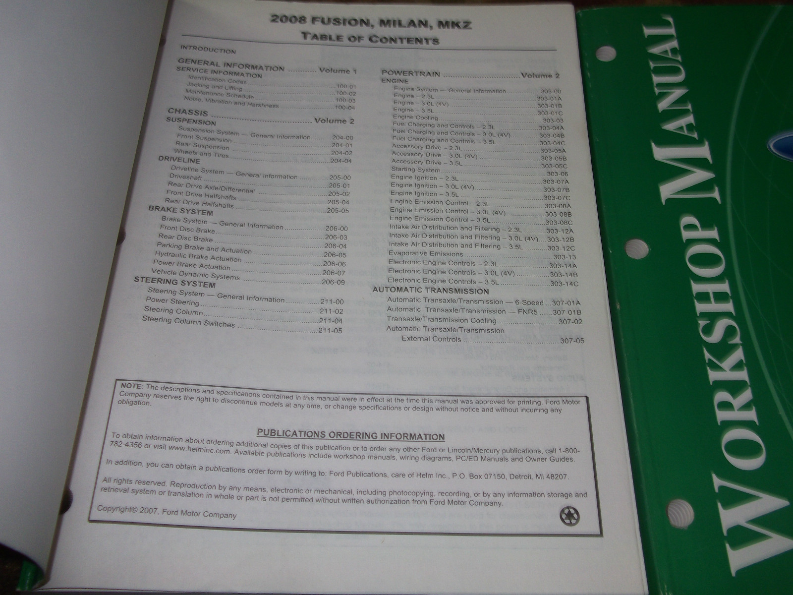 Manuale Di Riparazione Set OEM Per Ford Fusion Lincoln MKZ Milan 2008