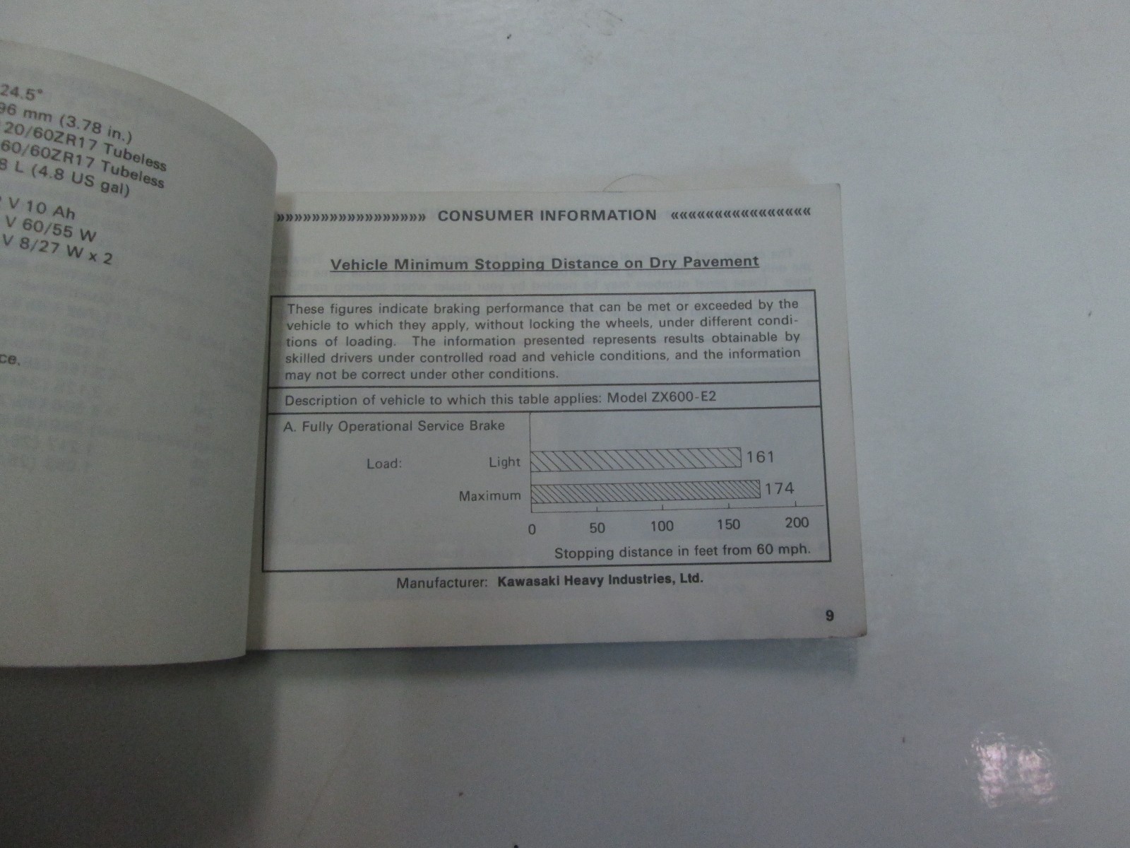 1992 Kawasaki Ninja ZX-6 Motorcycle Owners Manual MINOR DAMAGE STAINS OEM