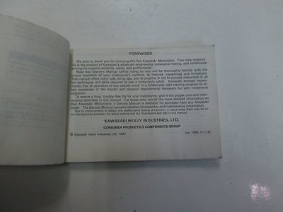1985 Kawasaki KX60 Motorcycle Owners Manual Service manual MINOR WATER DAMAGE