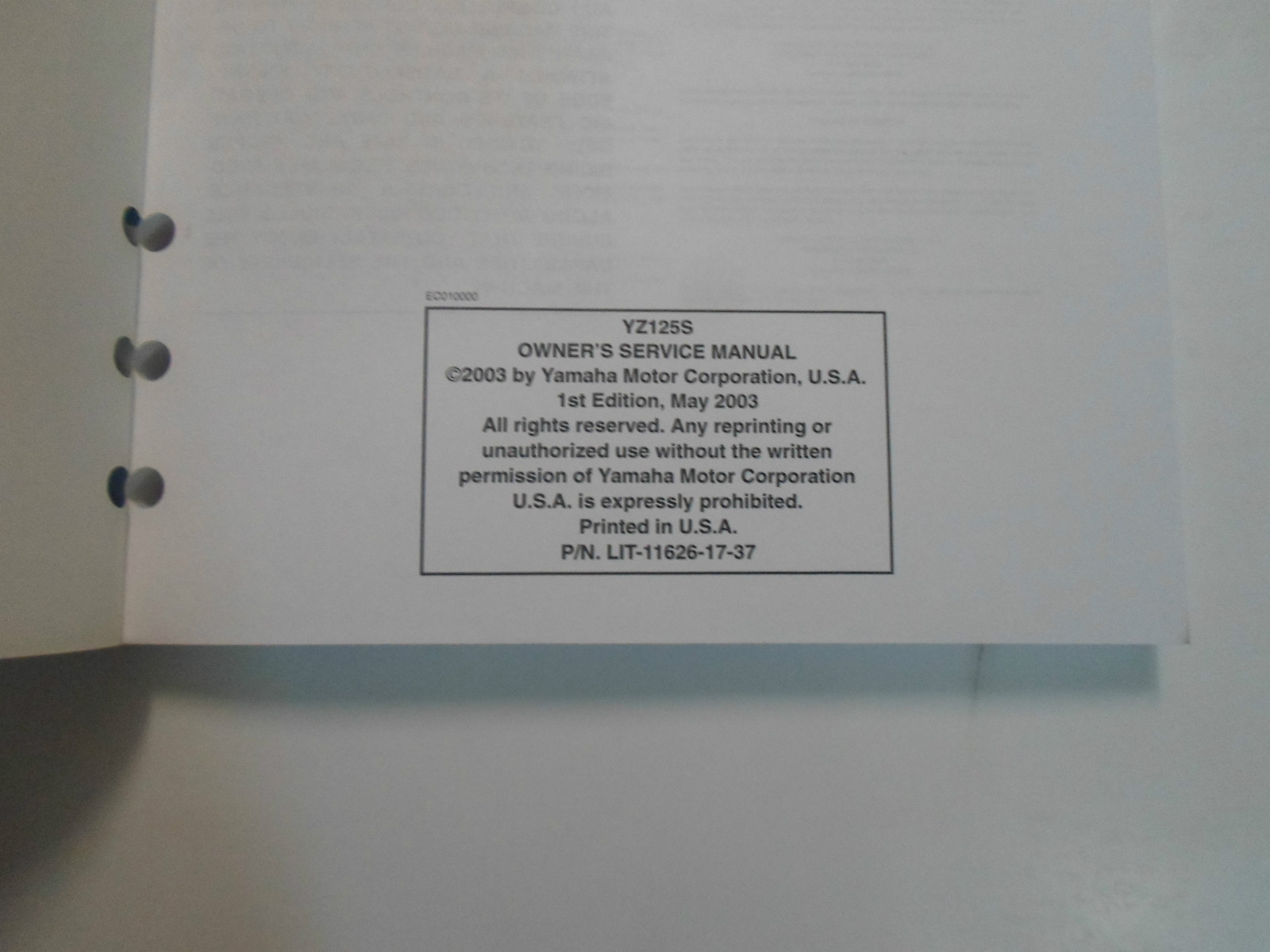 Yamaha YZ125S Owners Service Repair Shop Manual OEM LIT-11626-17-37