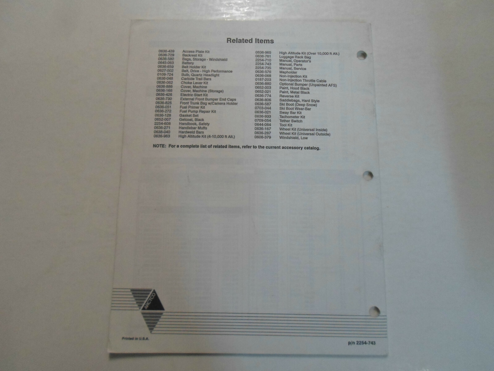 Manuale Illustrato Di Parti E Servizio OEM Arctic Cat Kitty Cat 1988 2254-444
