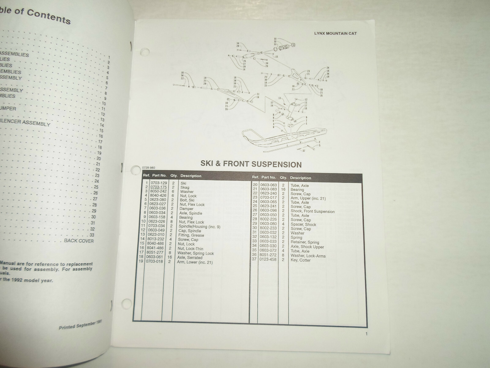 Catalogo Illustrato Di Parti Arctic Cat Snowmobile Lynx Mountain Cat 1992