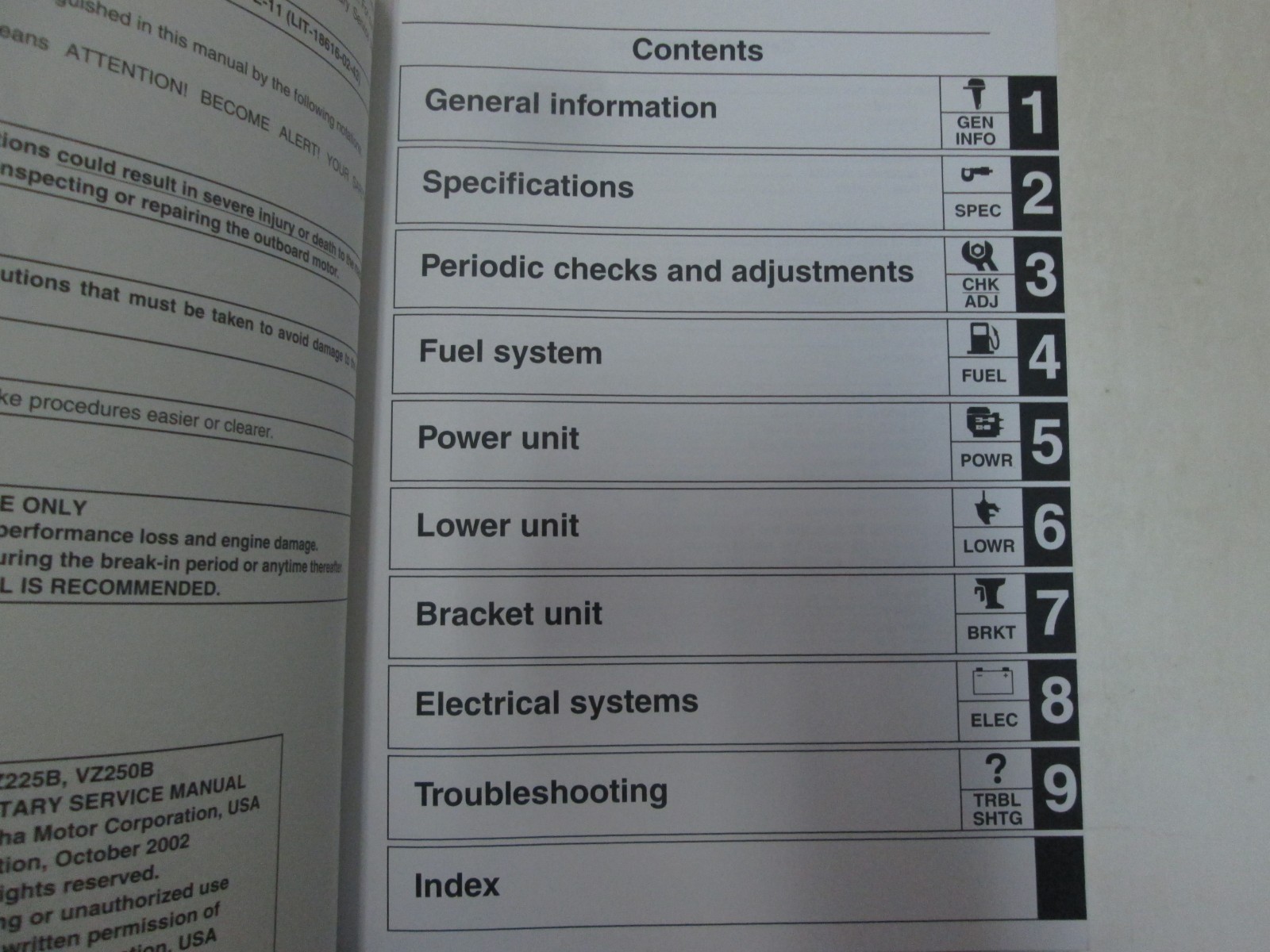 2003 Yamaha VZ225B VZ250B Servizio supplementare MANUALE
