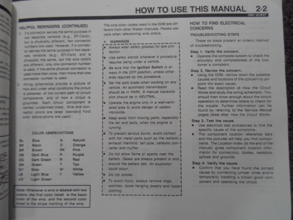 1992 Manuale diagnostico di Nissan Quest Electrical Cablaggio