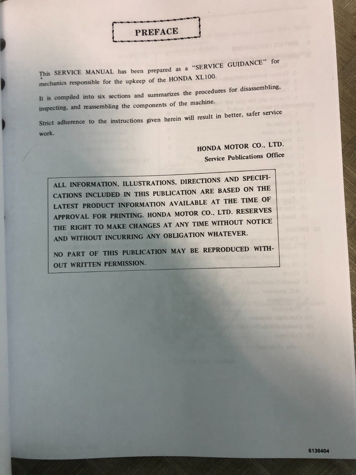 1974 1975 1976 1977 HONDA XL100 XL 100 Service Shop Repair Manual BRAND NEW