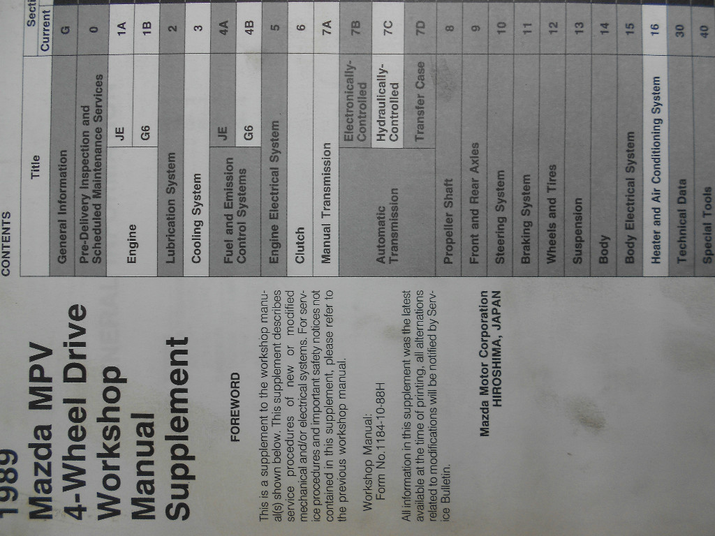 Ottimo manuale da avere se possiedi uno dei veicoli. Questo manuale pubblicato Mazda e per l'uso del tecnico Mazda per servire un veicolo MPV.