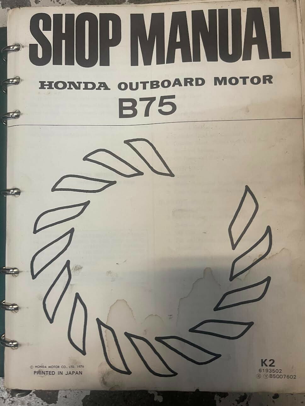Manuale del negozio Honda Outboard Motor B75 K2 6193502 OEM 1976 1977