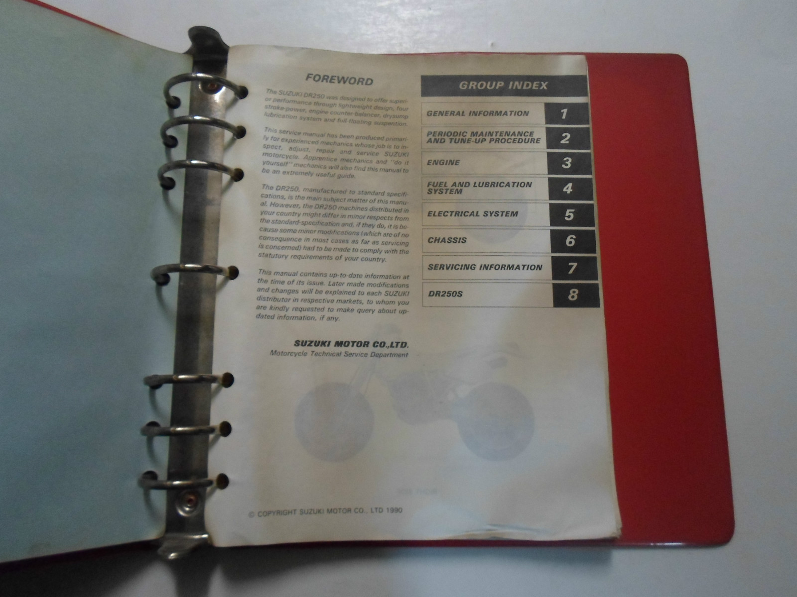 1990 Suzuki Dr 250 250S Servizio Riparazione Negozio Manuale Binder Vetrata