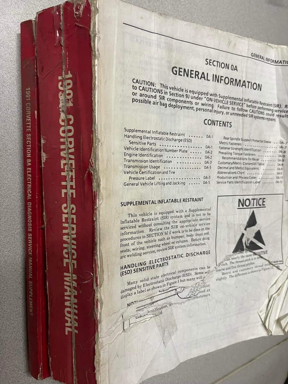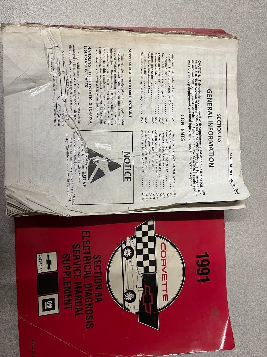 1991 Factory Chevrolet Corvette Service Manual and Electrical Diagnosi Manual Supplemento