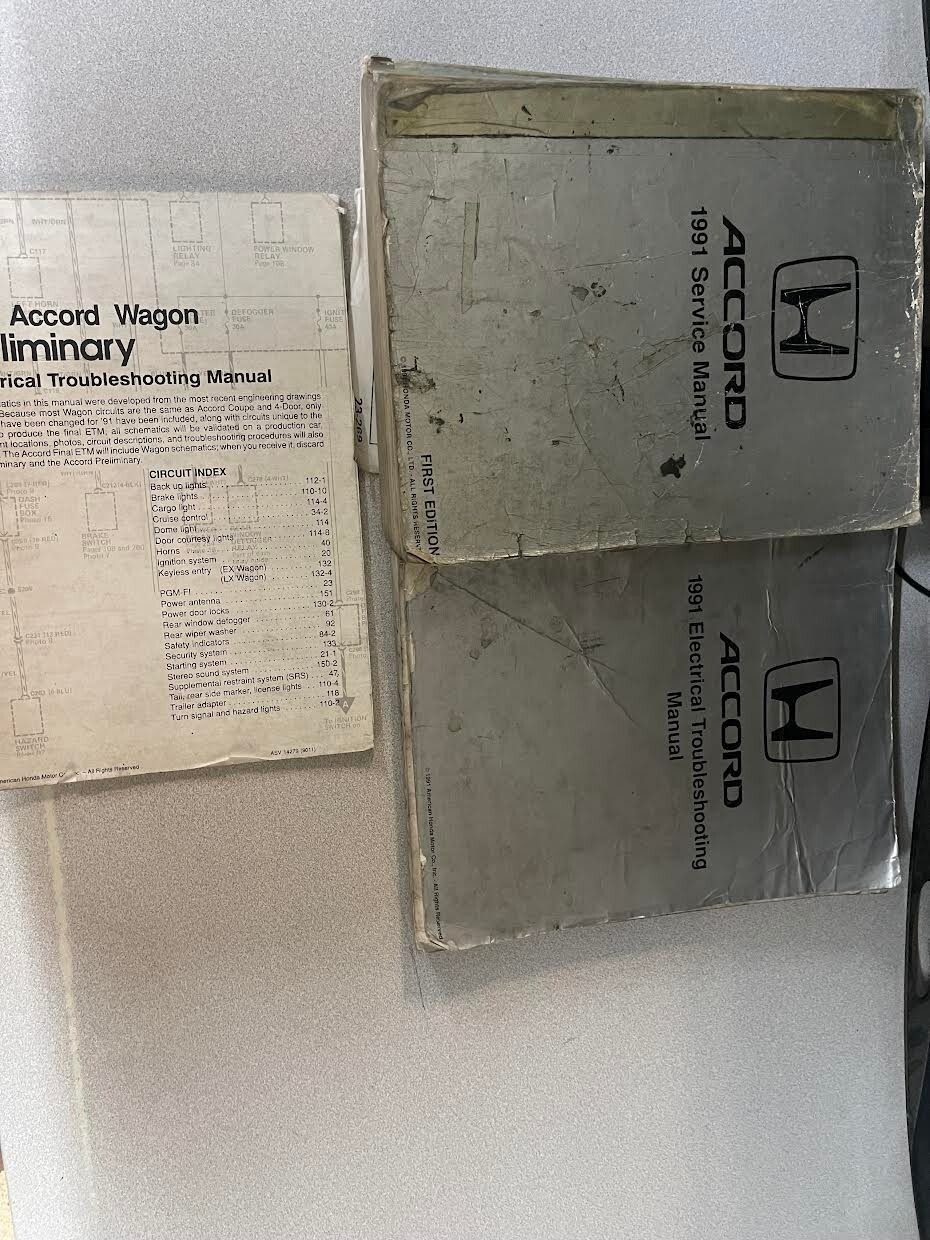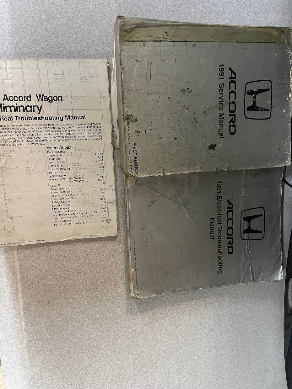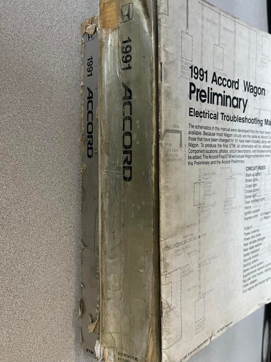 1991 Honda Accord Factory Service Manual, 1991 Honda Accord Manuale di risoluzione dei problemi elettrici e Manuale di cablaggio preliminare