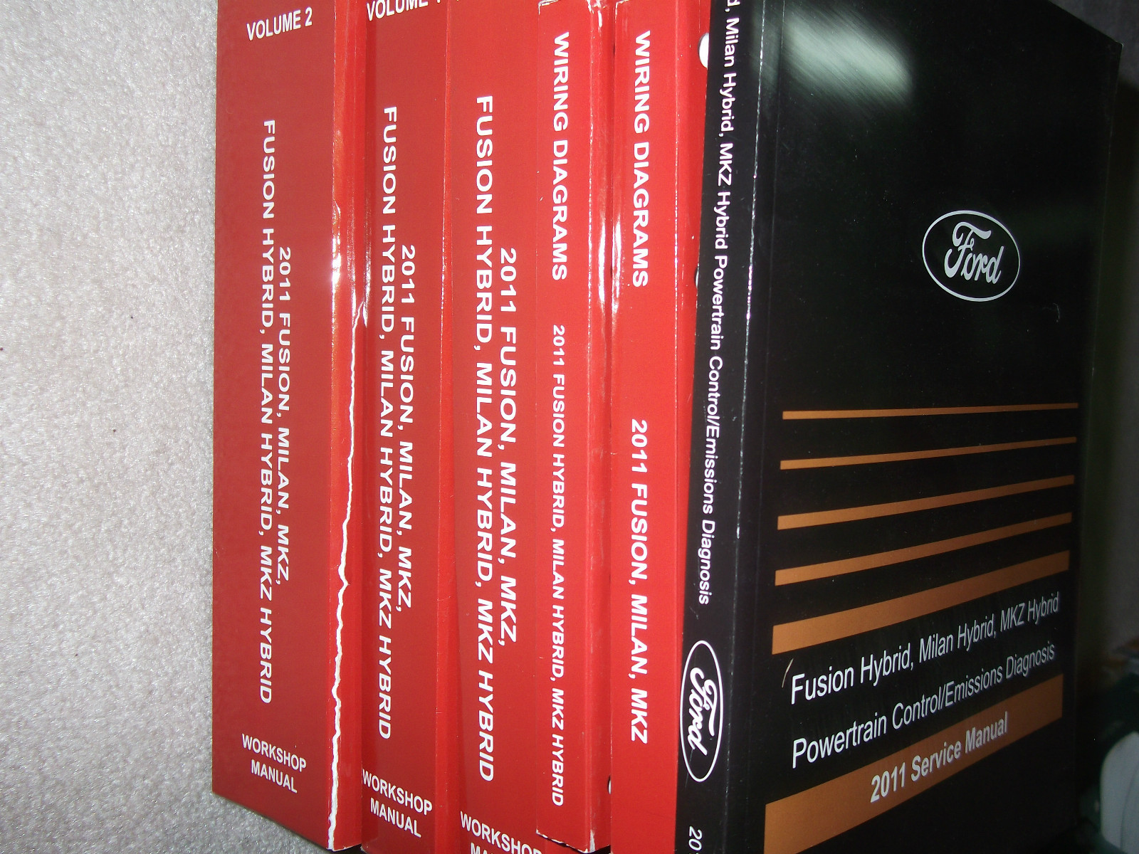 Factory 2011 Ford Fusion/Fusion Hybrid/ Lincoln MKZ/MKZ Hybrid/Mercury Milan/Milan Hybrid Service Manual 3 Volume Set, Manuale di cablaggio elettrico e Manuale di diagnosi di emissione del controllo del propulsore.