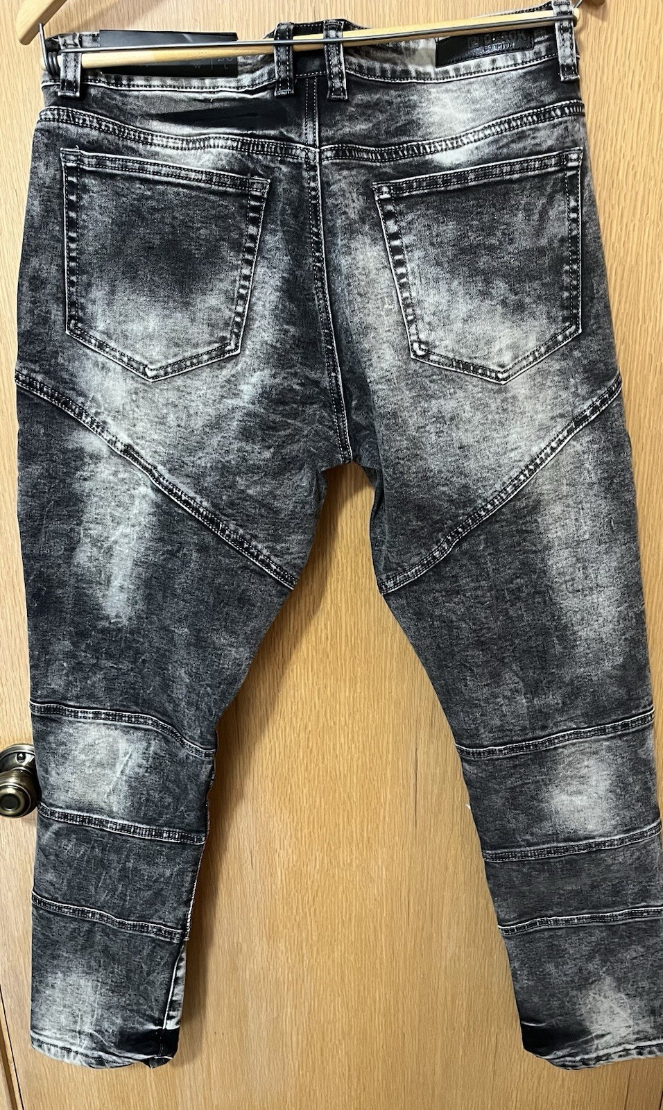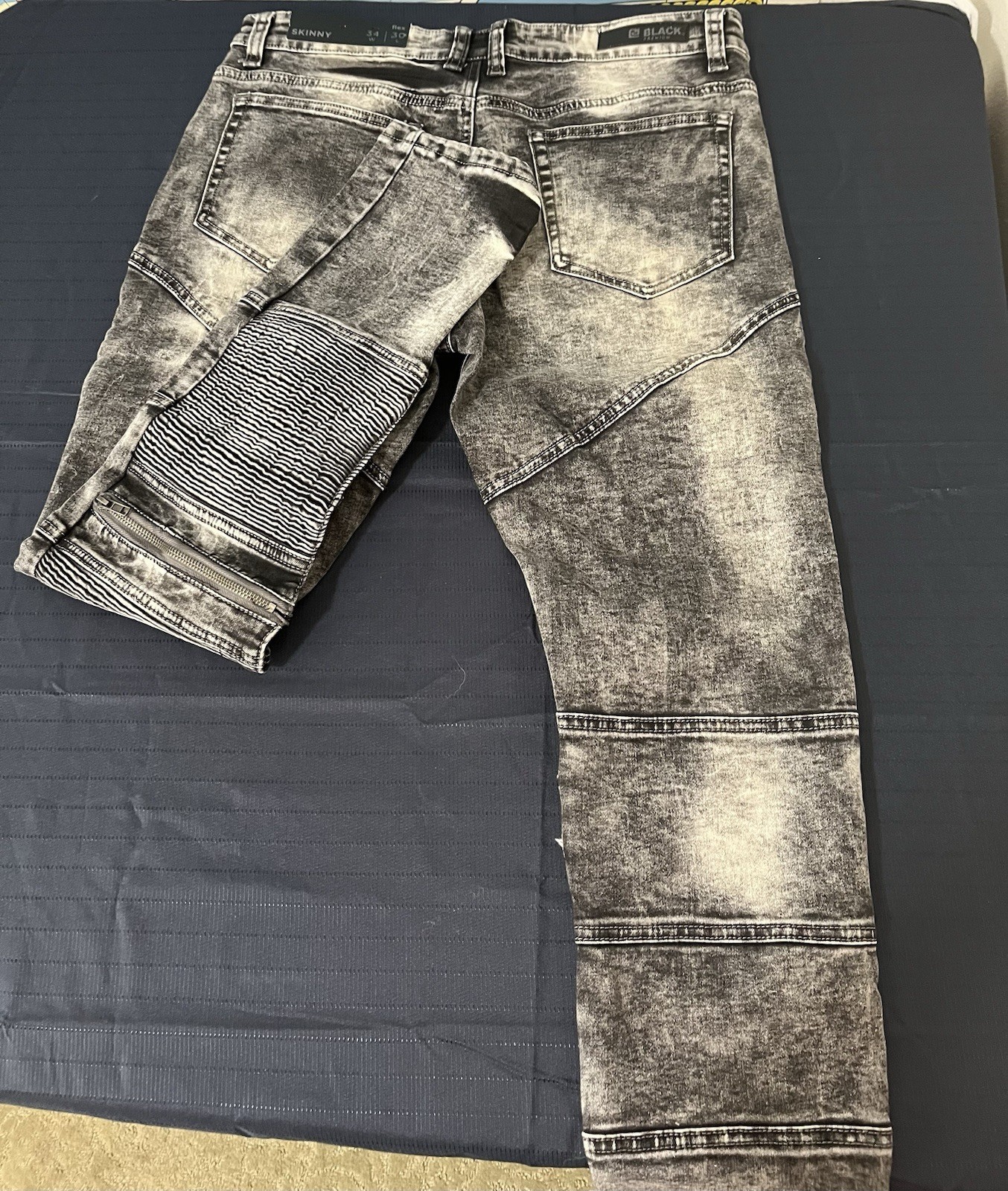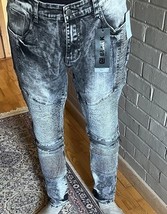 CJ Black Premium Jeans Mens 34x30 Moto Skinny Flex Zippers Black Acid Wash