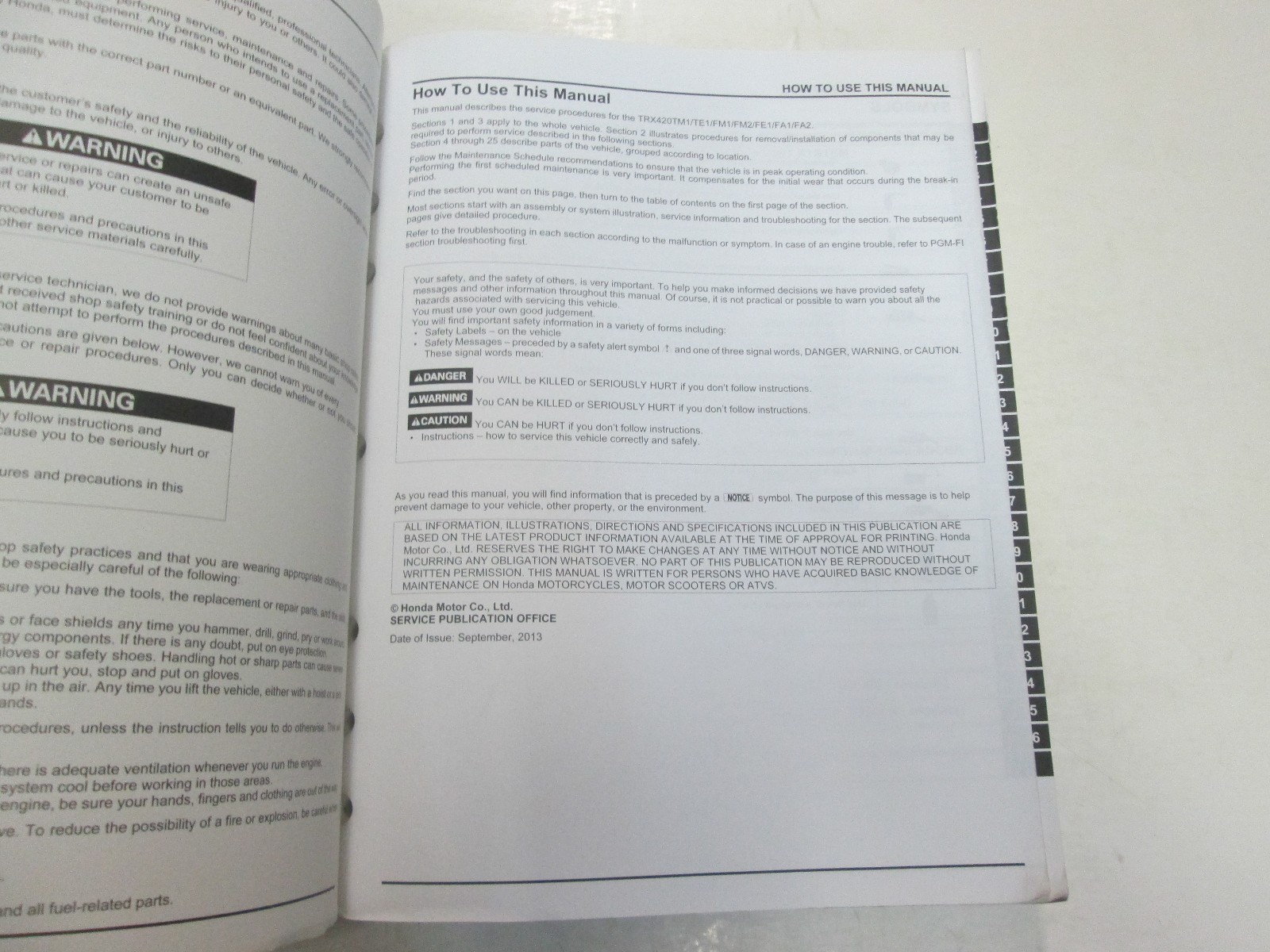 2014 Honda TRX420FA1/FA2 TRX420TM1/TE1/FM1/FM2/FE1 Service ShopRepair Manual